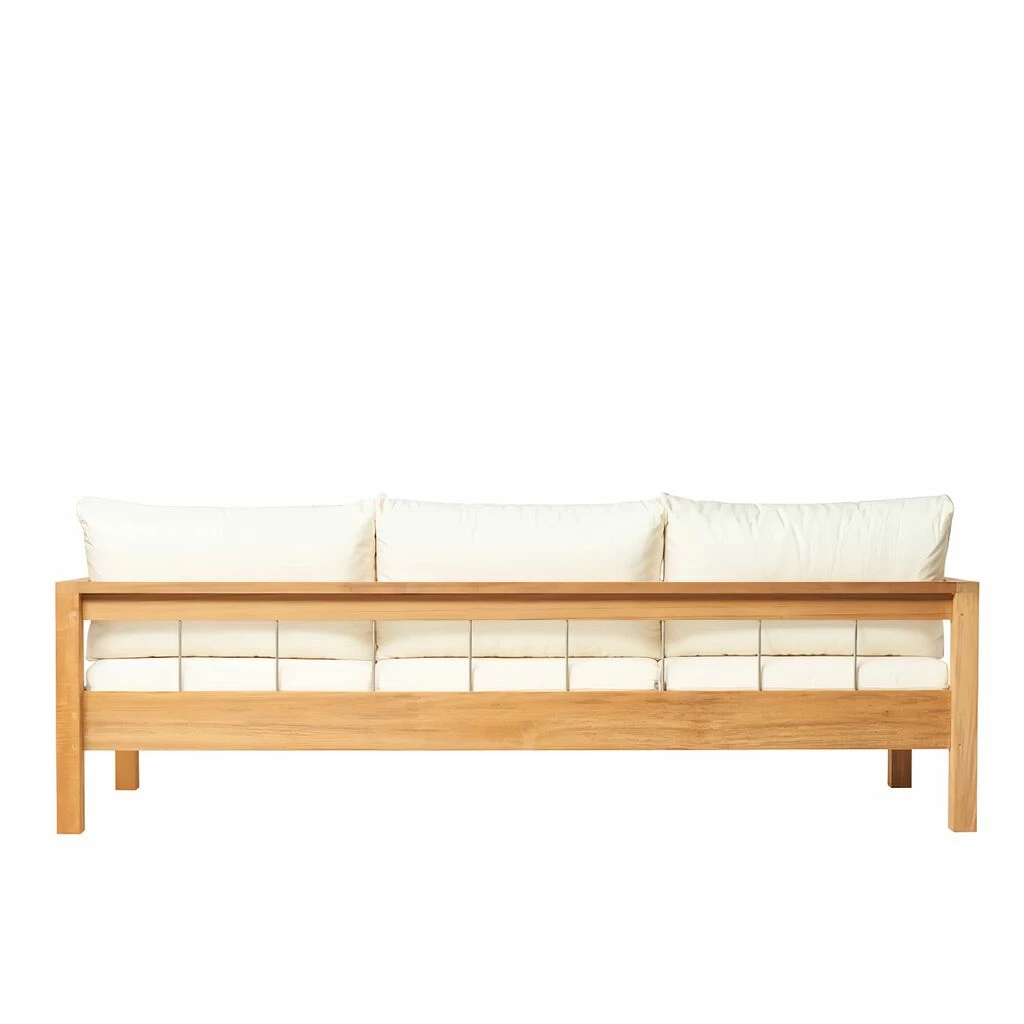 Diese Gartenbank sollte in keiner Loungeecke fehlen. Sie bietet Platz für drei Personen und wird aus besten Teakholz gefertigt. Die Lounge-Bank lässt sich wunderbar zu allen anderen Stücken aus der LUCY-Loungereihe kombinieren. Die Kissenauflagen sind schimmelresistent, wasser- und schmutzabweisend, luftdurchlässig und sehr pflegeleicht in der Reinigung.