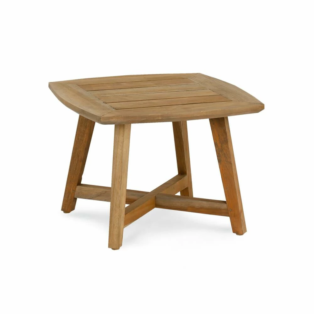 Dieser kleine Beistelltisch ist aus recyceltem Teakholz mit einer speziellen Patina gefertigt. Der Tisch ist stabil, witterungsbeständig und passt optimal zu unseren Loungemöbeln Vimen.