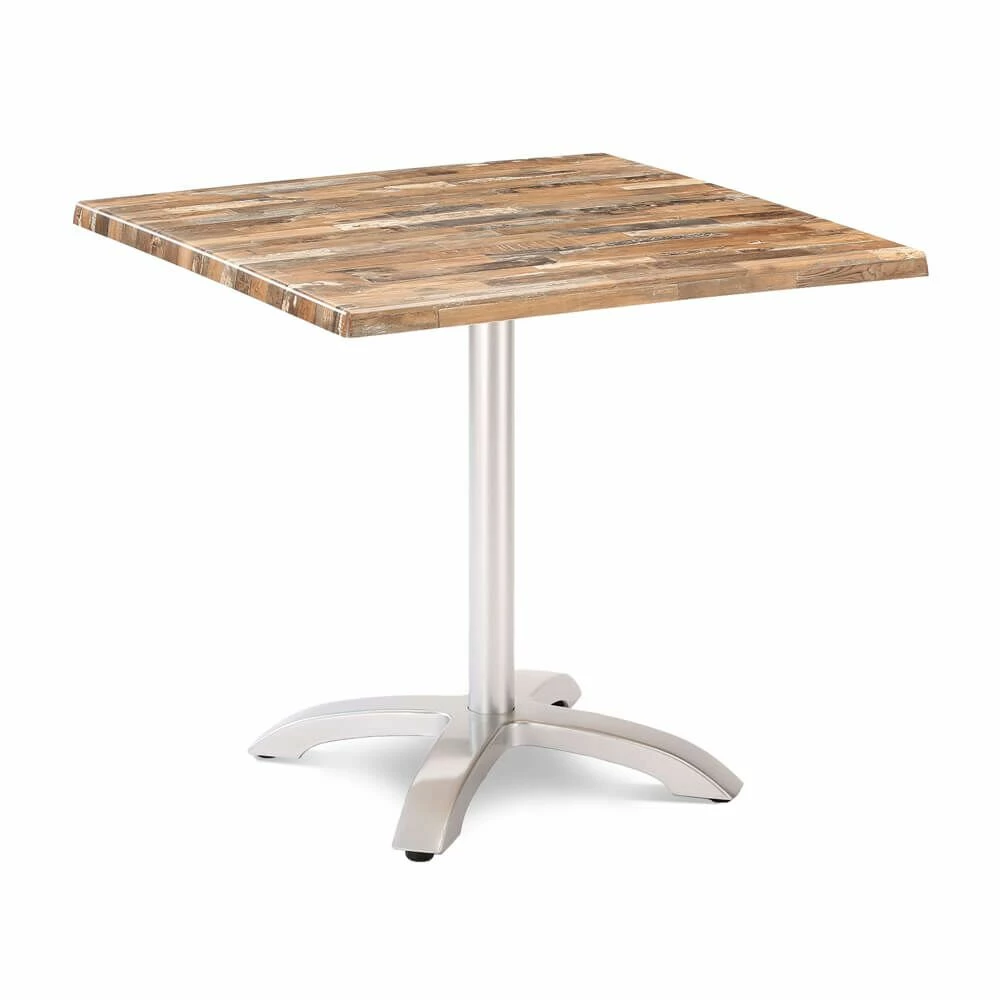 Mit einem korrosionsbeständigem Aluminiumgestell in silberner Optik hergestellt, besticht der Klapptisch durch eine Werzalit-Tischplatte mit individuell wählbarem Dekor. Die Platte ist extrem robust gegenüber mechanischen Beanspruchungen sowie Hitze.