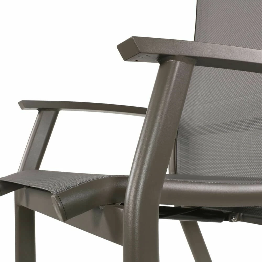 Dieser robuste Gartenstuhl wird unter ständiger Qualitätskontrolle aus Aluminium gegossen und erhält eine farbige Pulverbeschichtung. Die Sitzfläche wird aus Textylen gefertigt, einem strapazierfähigen und robusten Kunststoff. Das Outdoor-Möbelstück ist robust und wetterfest. Zur Reinigung sind Wasser und ein Schwamm ausreichend. Von säurehaltigen Reinigungsmittel wird abgeraten. Diese können die Oberfläche schädigen und zu einem Verlust der Wetterbeständigkeit führen.