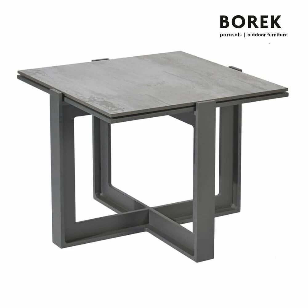 Die Gartenmöbel des Herstellers Borek zeichnen sich durch eine dauerhafte Stabilität und ein modernes Design aus. Eine hochwertige Aluminiumlegierung, die bei 180 Grad pulverbeschichtet wurde, bildet das Gestell der Möbel. Hinzu kommt eine Tischplatte aus Dekton. Das Material ist beständig gegenüber Kratzern, Hitze, Kälte, UV-Strahlung und ist farbecht. Die Tische sind somit absolut wetterfest. Neben Gartentischen bietet der Hersteller auch Loungemöbel, Gartenliegen und Sonnenschirme an, die Sie ebenfalls in unserem Shop online bestellen können.