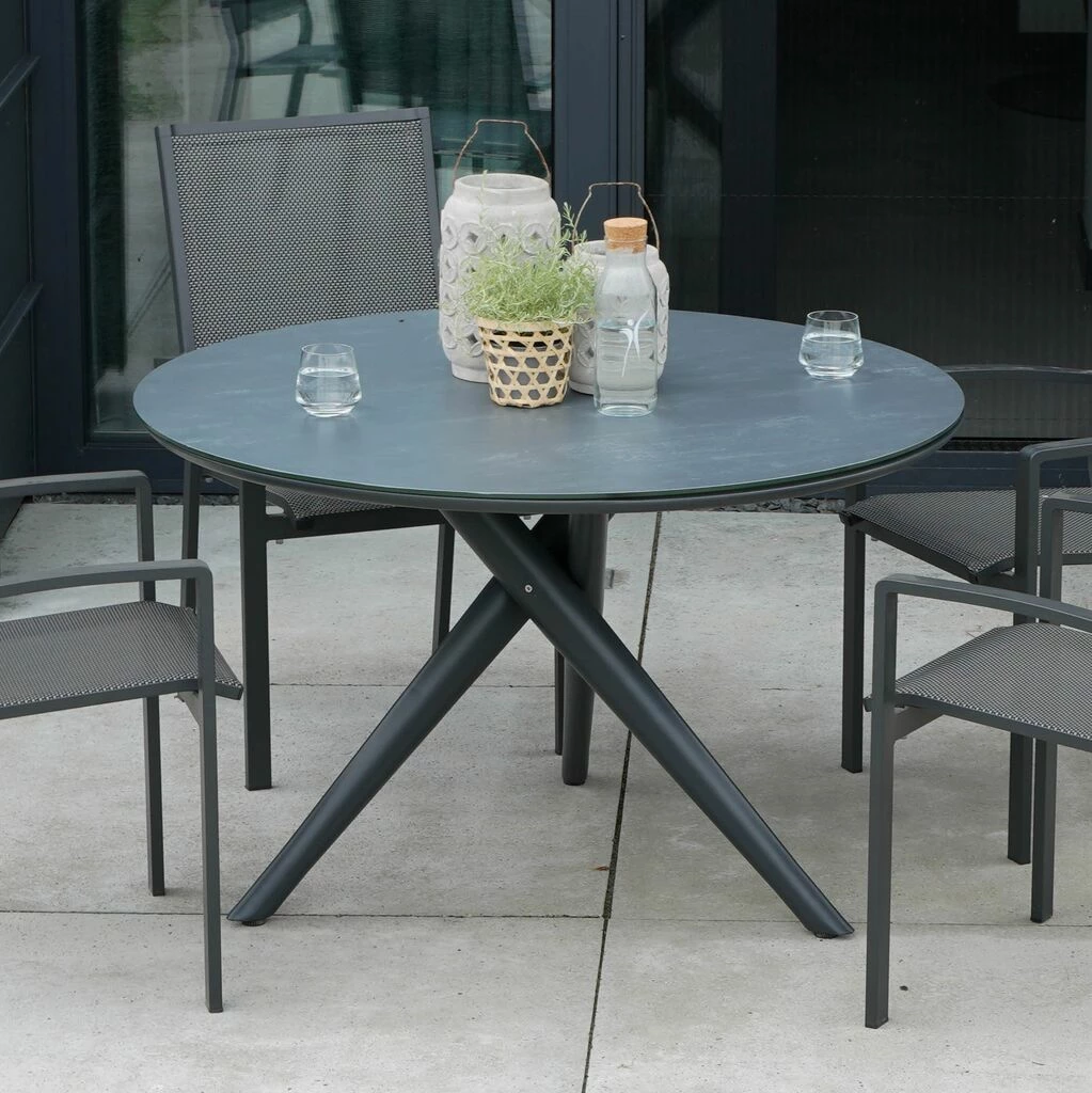 Dieser robuste Gartentisch wird unter ständiger Qualitätskontrolle aus Aluminium gefertigt. Als Tischplatte wird 8mm dickes, beschichtetes Keramikglas verwendet. Die Outdoor-Möbel sind beständig gegenüber Witterung und können ganzjährig im Außenbereich eingesetzt werden. Zur Reinigung sind Wasser und ein Schwamm ausreichend. Von säurehaltigen Reinigungsmittel wird abgeraten. Diese können die Oberfläche schädigen und zu einem Verlust der Wetterbeständigkeit führen.