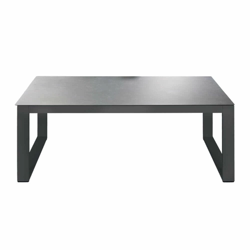 Dieser robuste Outdoor-Tisch wird unter ständiger Qualitätskontrolle aus Aluminium gegossen und erhält eine dunkelgraue Pulverbeschichtung. Eine 5 mm starke Glas-Keramik-Platte bildet die Tischplatte. Dieses Outdoor-Möbelstück ist wetterfest und robust. Zur Reinigung sind Wasser und ein Schwamm ausreichend. Von säurehaltigen Reinigungsmittel wird abgeraten. Diese können die Oberfläche schädigen und zu einem Verlust der Wetterbeständigkeit führen.