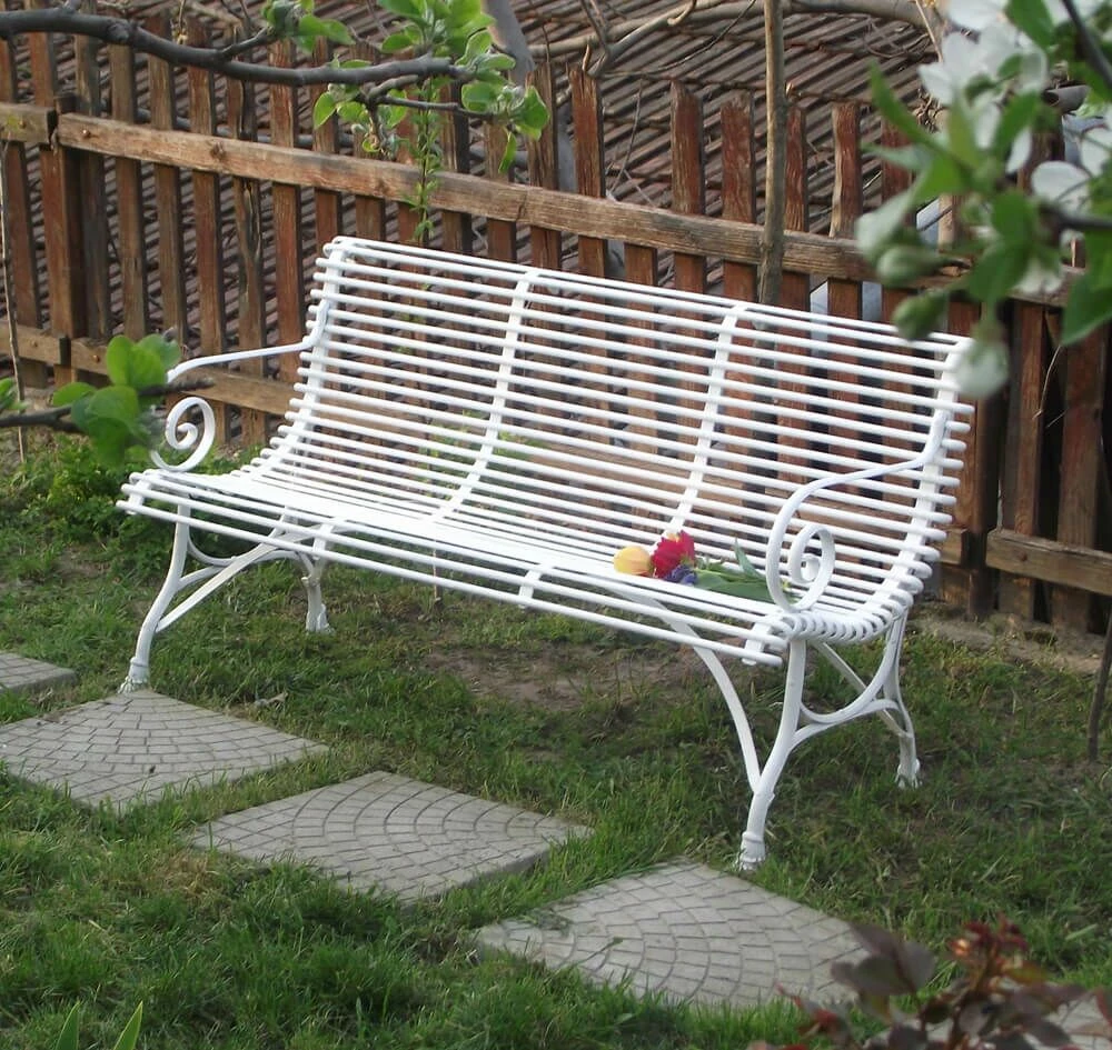 Diese 3-Sitzer Gartenbank aus Schmiedeeisen im antiken Design wurde nach Vorlagen aus dem 19. Jahrhundert gefertigt. Damals waren diese Sitzbänke in vielen französischen Gärten und Parkanlagen zu finden. Gefertigt wird die Bank in einer traditionsreichen Kunstschmiede als handwerkliches Unikat. Die farbliche Gestaltung erfolgt nach Ihren Wünschen, innerhalb der RAL Farbpalette können alle Farbwünsche umgesetzt werden. Sie wollen die Gartenbank mit ein paar passenden Stühlen ergänzen? Kein Problem, in unserem Sortiment finden Sie ebenso schmiedeeiserne Gartenstühle und Gartentische für Ihre Sitzecke.