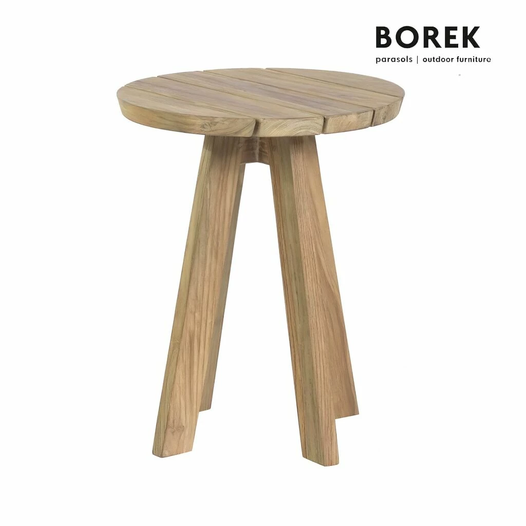 Das Teakholz der Tectona Grandis ist stabil gegenüber UV-Strahlung, Chlor sowie Salzwasser. Im Laufe der Zeit altert das unbehandelte Hartholz. Kleine Risse sind normal und haben keinen Einfluss auf die natürliche Robustheit. Eine regelmäßige Reinigung mit einem Teak Cleaner wird empfohlen. Mittels Nachbehandlung mit dem Borek Teak Protector wird das Holz gesättigt, sodass Nässe und Schmutz nicht eindringen können. Um ergrautes Holz wieder frisch aussehen zu lassen, wird der Borek Teak Sealer empfohlen, welches das natürliche Braun des Teakholzes wieder zum Vorschein bringt.