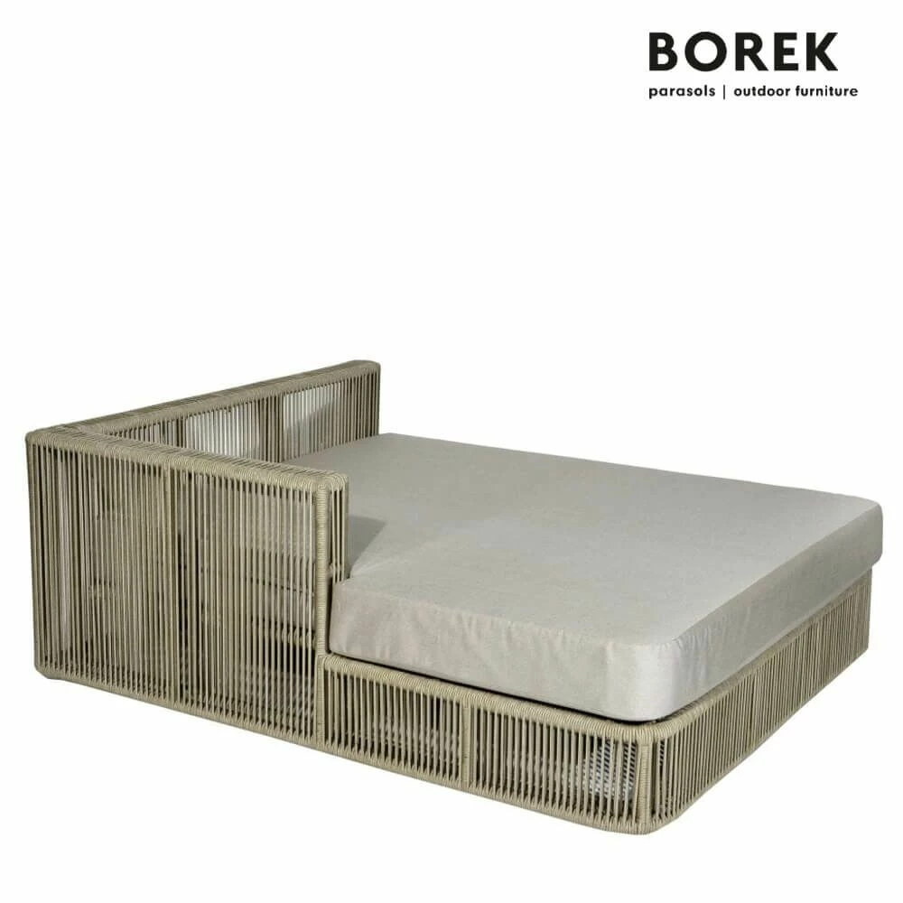 Das Gartensofa vom niederländischen Gartenmöbelhersteller Borek wird aus qualitativ hochwertigen Materialien hergestellt. Das pulverbeschichtete Aluminiumgestell ist mit einer Bespannung aus Ardenza-Seil überzogen. Ardenza ist reißfest, UV-beständig, resistent gegenüber Temperaturen zwischen -40 bis +80 Grad Celsius und extrem widerstandsfähig gegenüber Witterung. Die Gartenmöbel des Herstellers Borek zeichnen sich durch eine dauerhafte Stabilität und ein modernes Design aus. Eine hochwertige Aluminiumlegierung, die bei 180 Grad pulverbeschichtet wurde, bildet das Gestell der Möbel.