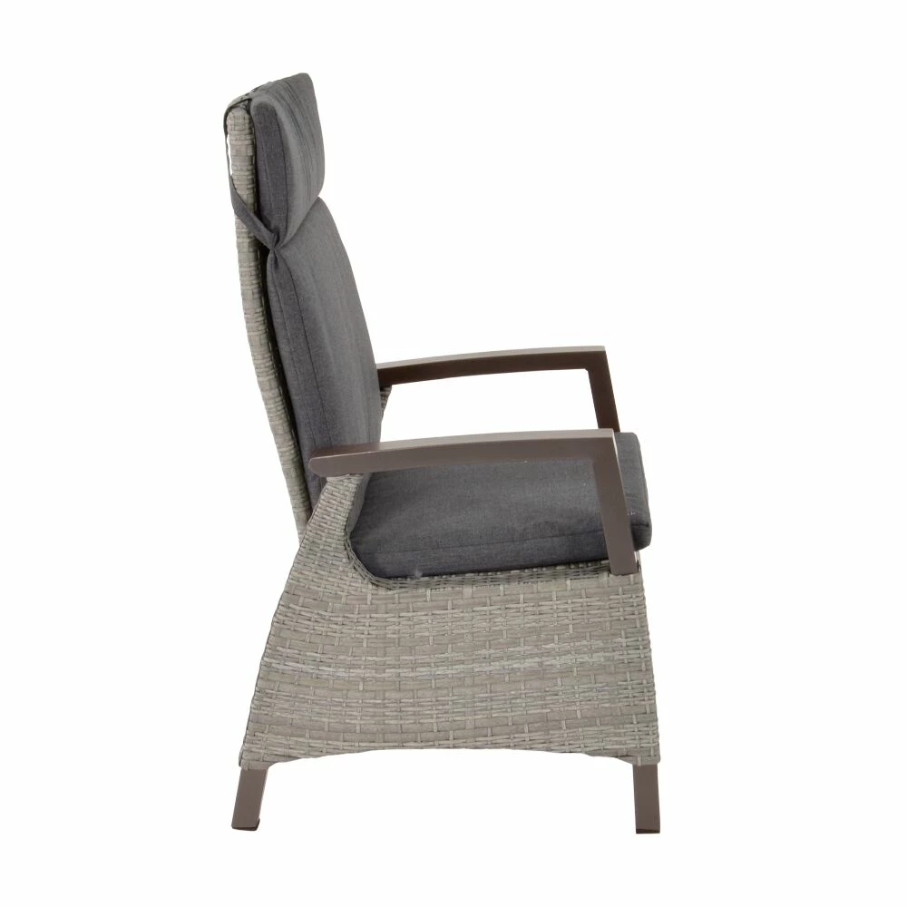 Diesesr robuste Gartenstuhl wird unter ständiger Qualitätskontrolle aus Aluminium gefertigt. Das Polyrattan besteht gemischten, beigen Strängen. Als Auflagen werden schmutz- und wasserabweisende Olefin-Bezüge (220gr/qm) verwendet. Die Outdoor-Möbel sind beständig gegenüber Witterung und können ganzjährig im Außenbereich eingesetzt werden. Zur Reinigung sind Wasser und ein Schwamm ausreichend. Von säurehaltigen Reinigungsmittel wird abgeraten. Diese können die Oberfläche schädigen und zu einem Verlust der Wetterbeständigkeit führen.