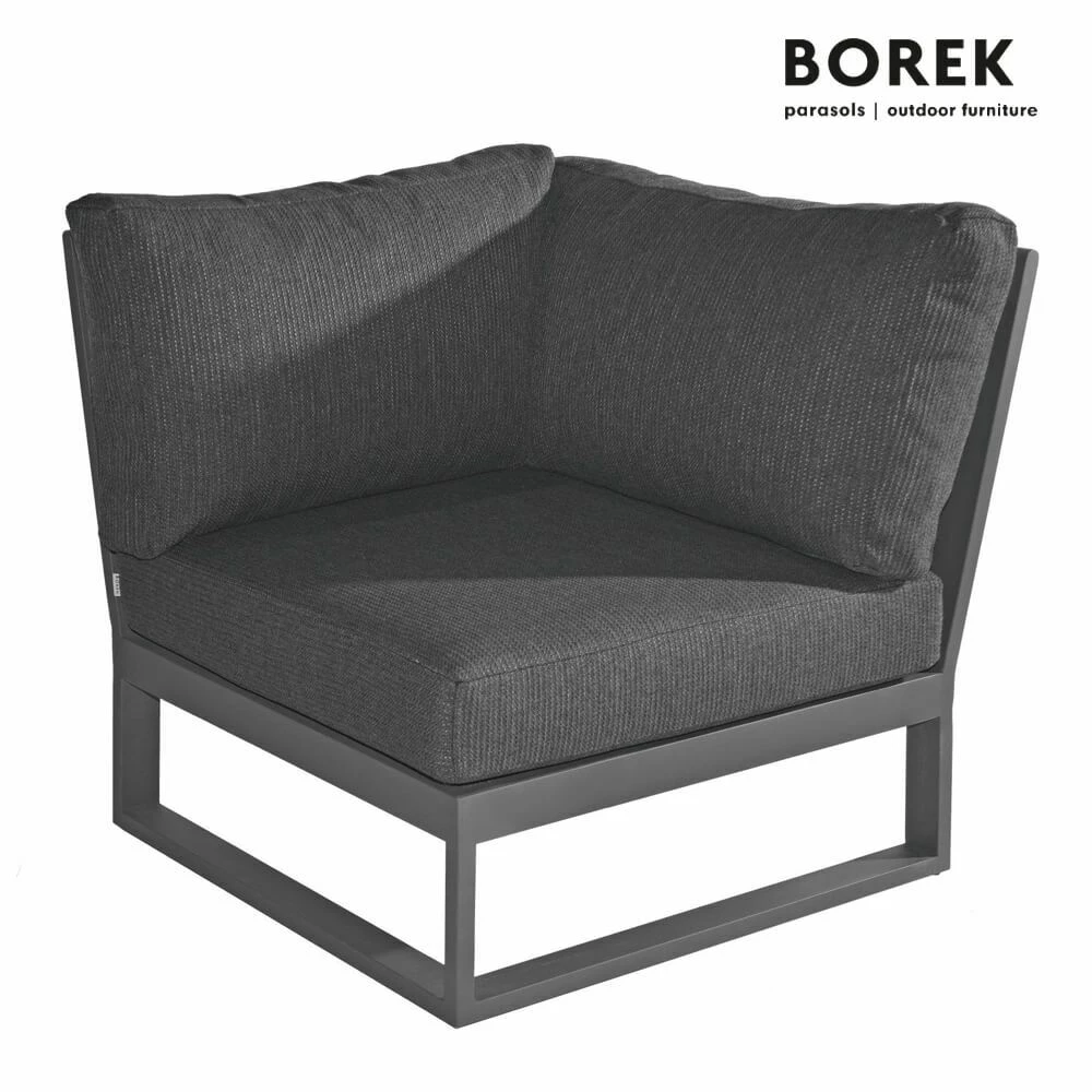 Das Loungemodul vom niederländischen Gartenmöbelhersteller Borek wird aus qualitativ hochwertigen Materialien hergestellt. Das pulverbeschichtete Aluminiumgestell ist mit einer Bespannung aus Ardenza-Seil überzogen. Ardenza ist reißfest, UV-beständig, resistent gegenüber Temperaturen zwischen -40 bis +80 Grad Celsius und extrem widerstandsfähig gegenüber Witterung.