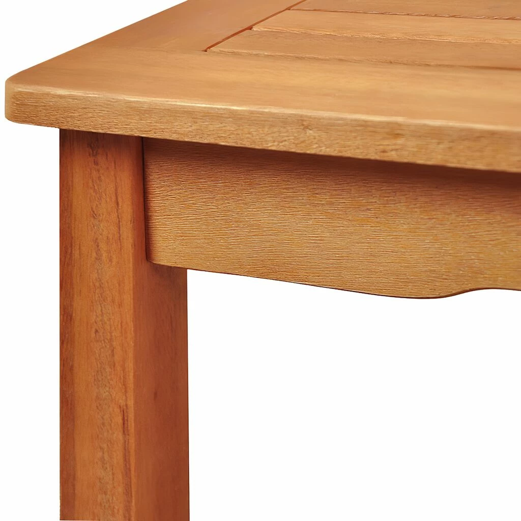 Unsere Gartenmöbel zeichnen sich durch hohe Qualitäts-Standards aus. Die verwendeten Rohstoffe werden regelmäßig auf ihre Güte hin kontrolliert. Vom Scharniergelenk, über die stabile Verschraubung bis hin zur aufwendigen Oberflächenbearbeitung, stellen wir überaus hohe Ansprüche an Verarbeitung und Nachhaltigkeit. Das verwendete Eukalyptusholz stammt aus ökologisch nachhaltigen Wäldern und entspricht den Standards des FSC-Zertifikates. Dies gewährleistet eine Verarbeitung des Holzes bis hin zum fertigen Tisch unter hohen sozialen Kriterien. Der Gartentisch wird schadstofffrei gefertigt, eignet sich aufgrund der verwendeten Materialien hervorragend für den Outdoor-Bereich und den Wintergarten und kann zusammen mit passenden Gartenbänken bestellt werden. Zusätzlich finden Sie den Gartentisch im passenden Set mit Stuhl und Auflagen in unserem Online-Shop.