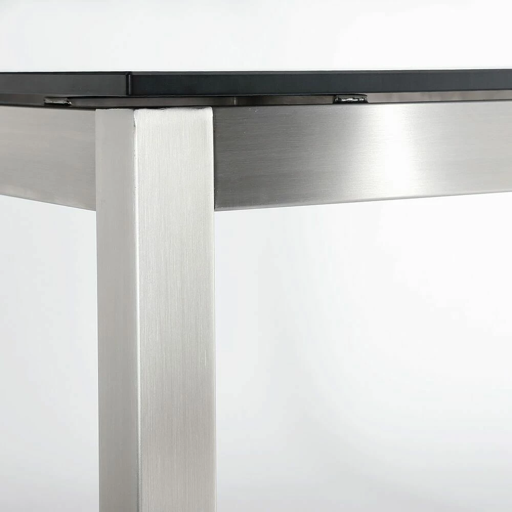 Unsere hochwertigen Gartenmöbel zeichnen sich durch eine hohe Robustheit gegenüber Witterung aus. Egal ob auf dem Balkon, auf der Terrasse oder im Garten platziert, besticht der Tisch durch ein elegantes Design. Die Sitz- sowie Rückenfläche werden aus luftdurchlässigem Ergotex gefertigt, einem Polyester, welches sich durch eine hohe Komfortabilität, Strapazierfähigkeit, Atmungsaktivität und Wasserresistenz auszeichnet. Das elegante Gestell aus rostfreiem Edelstahl sorgt für ein leichtes Handling. Die Gelenkteile sind besonders stabil und langlebig. Die Tischplatte wird aus robustem HPL-Schichtstoff gefertigt. Das Material ist bis 180°C hitzebeständig, kratzfest und pflegeleicht.