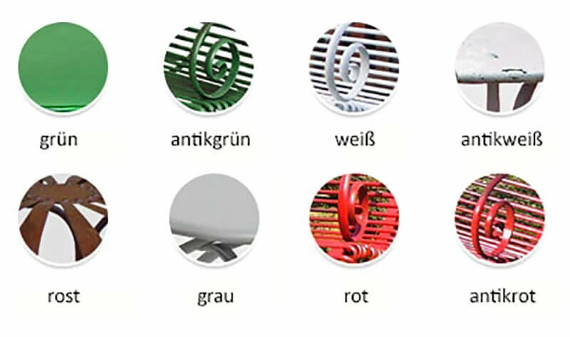 Die Vorlagen für diese Gartenbank im antiken Design stammen aus dem 19. Jahrhundert. Zu dieser Zeit fand man diese Outdoor-Bänke in vielen französischen Gärten und Parks. Unsere nostalgische Bank wird aus hochwertigem Schmiedeeisen in Handarbeit in einer traditionsreichen Kunstschmiede rostfrei, stabil und witterungsbeständig gefertigt. Ob grün, rot oder klassisch weiß, der farblichen Gestaltung sind innerhalb der RAL Farbpalette keine Grenzen gesetzt. Um das antike Design zu unterstreichen, können die Farben im antiken Stil gewählt werden. In unserem Sortiment finden Sie ebenso passende Gartenstühle und Gartentische.