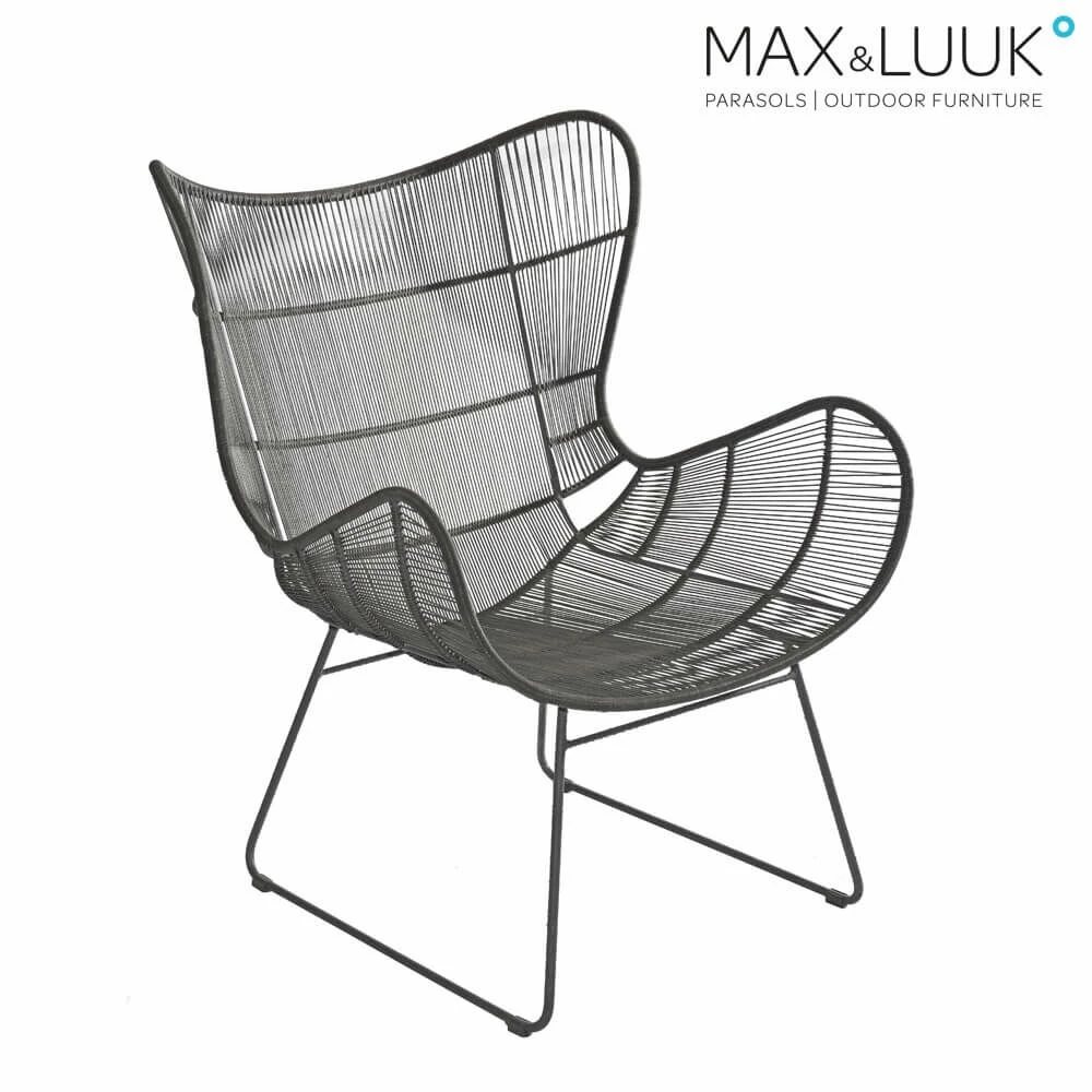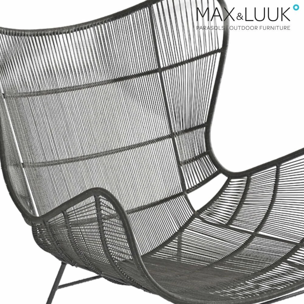 Die Sitzschale des Gartensessels ist mit einem Allwetterseil umflochten. Dabei handelt es sich um ein innovatives und starkes Material, welches den Sitzmöbeln von Max & Luuk ein aufregendes und modernes Design verleiht. Die weiche Outdoor-Faser erhöht den Sitzkomfort. Sie wird synthetisch hergestellt und besteht aus Polyethylen. Das Gewebe wurde entwickelt, um Gartenmöbel herzustellen, die extremen Wetterbedingungen wie starker UV-Strahlung und Temperaturschwankungen standhalten. Darüberhinaus ist die Faser resistent gegenüber Schimmel. Salz- und Chlorwasser hält sie ebenfalls stand. Es wird die Reinigung mit einem Multi Cleaner empfohlen. Zusätzlich können eine weiche Nylonbürste oder auch ein Niederdruckluftschlauch zur Pflege eingesetzt werden.