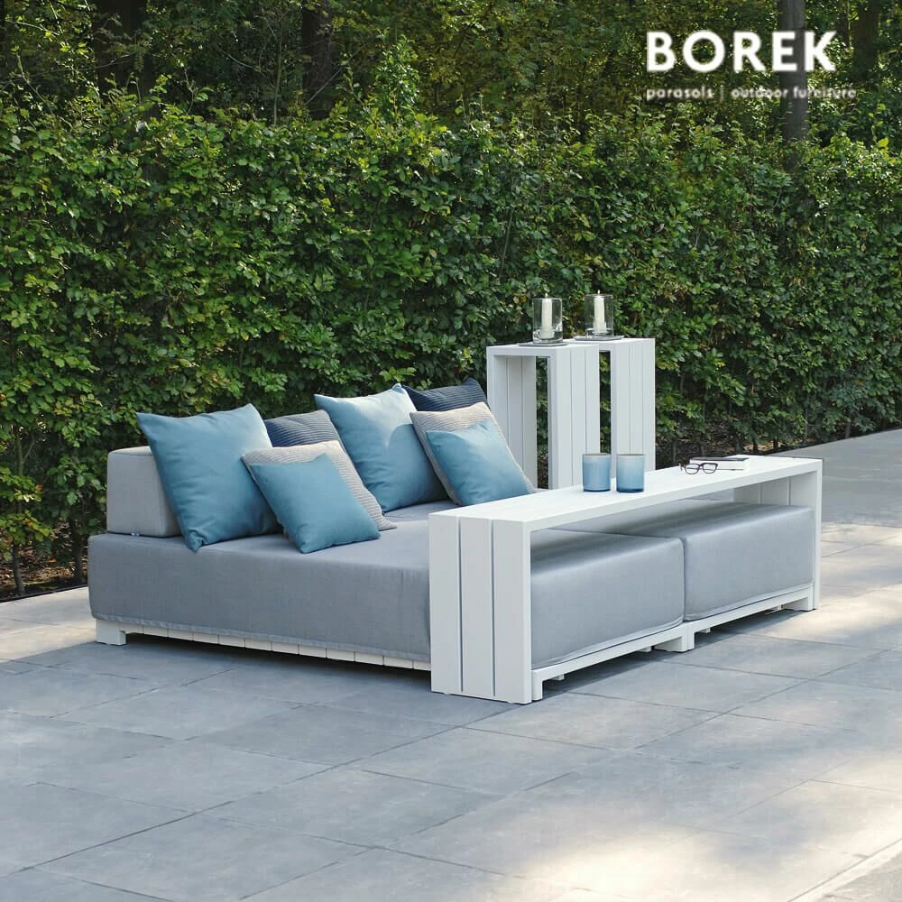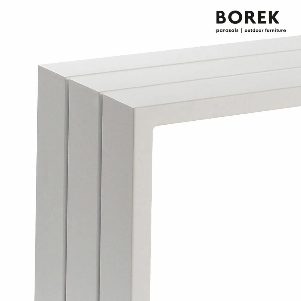 Die Möbel des niederländischen Gartenausstatters Borek überzeugen auch in der neuen Kollektion SAMOS mit hochwertigen Materialien, durchdachtem Design und stimmiger Farbgebung. Dieser elegante Beistelltisch lässt sich durch die schlichte Optik auf jeder Terrasse und als schöner Akzent in das Grün jedes Gartens integrieren. Die aufwendig verarbeiteten Aluminiumelemente des Gartentisches wurden mit einem Speziallack versiegelt der diesem Möbelstück Robustheit und Stabilität verleiht. Passend zu diesem schönen Tisch finden Sie in unserem Shop elegante Gartenliegen und Sitzbänke aus Metall.
