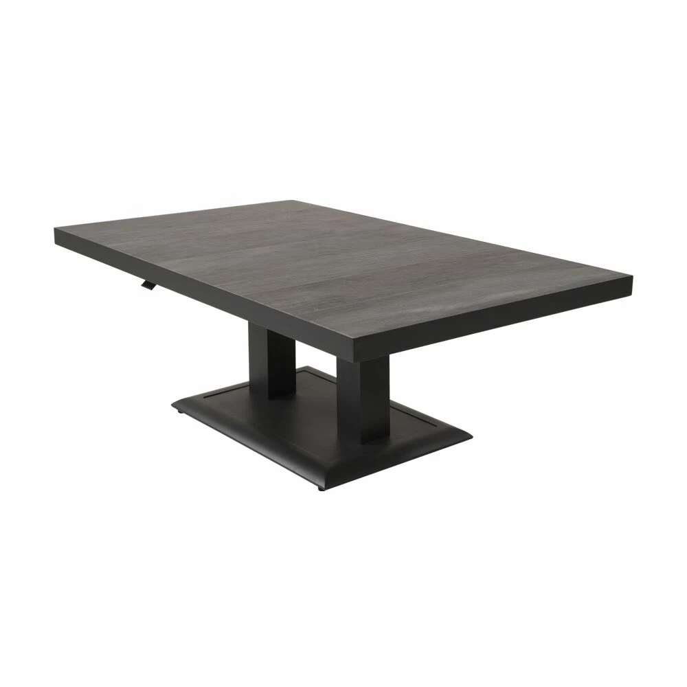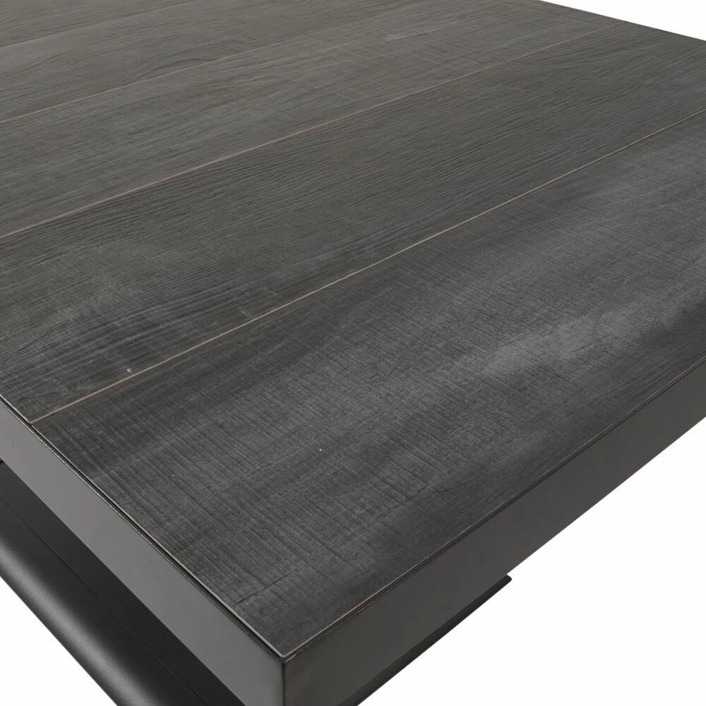 Dieser robuste Gartentisch wird unter ständiger Qualitätskontrolle aus Aluminium gefertigt. Als Tischplatte werden Keramikelemente mit Holzoptik verwendet. Die Outdoor-Möbel sind beständig gegenüber Witterung und können ganzjährig im Außenbereich eingesetzt werden. Zur Reinigung sind Wasser und ein Schwamm ausreichend. Von säurehaltigen Reinigungsmittel wird abgeraten. Diese können die Oberfläche schädigen und zu einem Verlust der Wetterbeständigkeit führen.