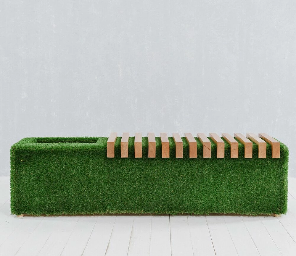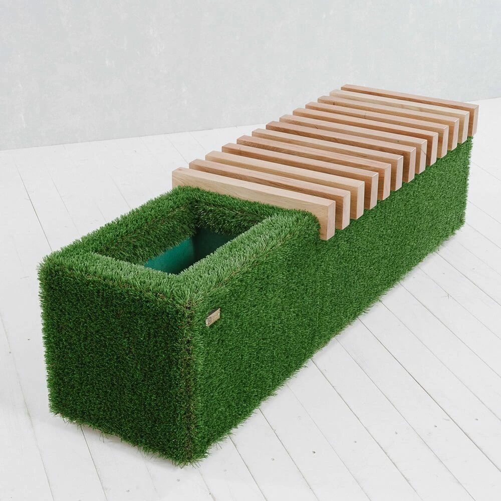 - Von Hand mit 40mm dickem Kunstrasen eingedeckt