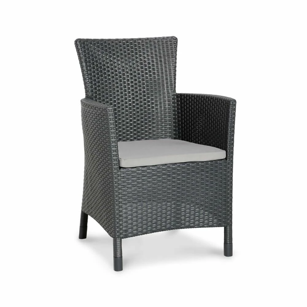 Unsere hochwertigen Gartenmöbel zeichnen sich durch eine hohe Robustheit gegenüber Witterung aus. Egal ob auf dem Balkon, auf der Terrasse oder im Garten platziert, besticht der Sessel durch ein elegantes Design. Die Möbel werden aus einem witterungsbeständigen Polypropylen-Flachgewebe in Rattan-Optik gefertigt. Der Gartenstuhl ist stabil, kann durch ein einfaches Klick-Schraub-System verbunden werden und wird inklusive Polyesterauflagen geliefert. Diese sind mit einem Reißverschluss ausgestattet und waschbar.