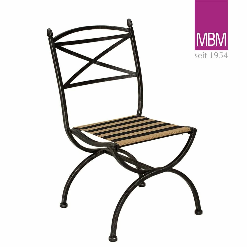 Die Gartenmöbel der Gruppe Medici werden aus massivem Schmiedeeisen gefertigt. Mit dezent antiken Einflüssen zaubern die Gartentische, Stühle und die Sonnenliege ein romantisches Flair in nahezu jede Umgebung. Hinter der klassischen Form verbirgt sich modernste Technik. Galvanisch verzinktes Eisen, das zum Schutz mit einer antik schwarzen Pulverbeschichtung versehen wurde. Auch die schwarz gestreifte Bespannung aus Textilene harmoniert mit dem mediterranen Design der Möbel.