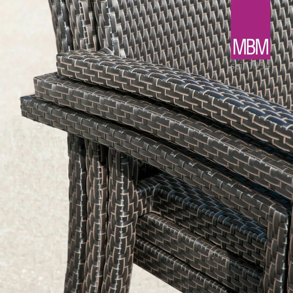 Die Gartenmöbel Serie Bellini wird aus hochwertigem Aluminium und einem braunem Kunststoffgeflecht (Mirotex), welches eigens von MBM entwickelt wurde, gefertigt. In Optik und Haptik steht das Geflecht echtem Rattan in Nichts nach, ist aber wesentlich pflegeleichter und langlebiger. Hier können Sie sich wirklich mit ruhigem Gewissen zurück lehnen und den Sommer genießen. Die Reinigung erfolgt mit handelsüblichen Reinigungsmitteln.