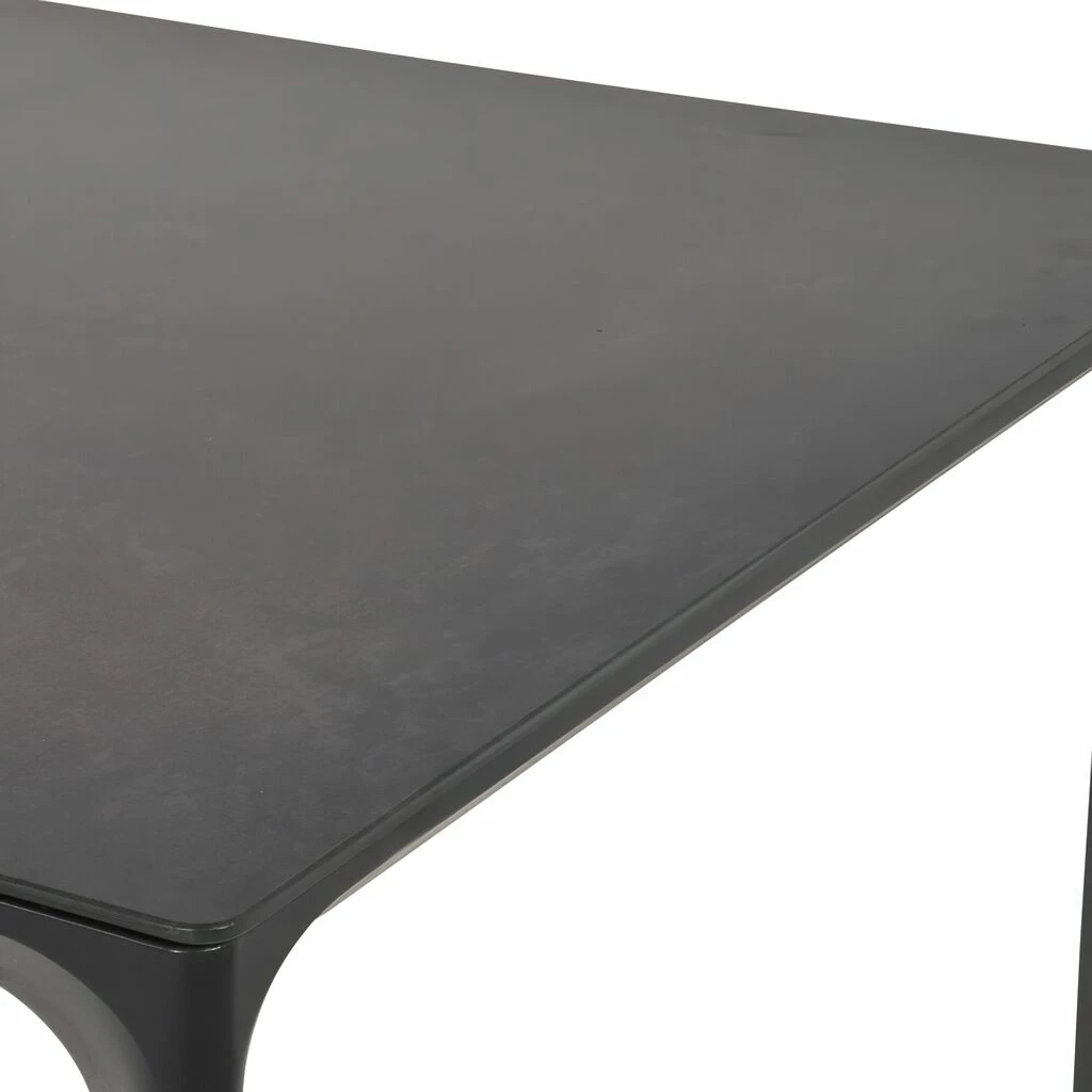 Dieser robuste Gartentisch wird unter ständiger Qualitätskontrolle aus Aluminium gegossen und erhält eine farbige Pulverbeschichtung. Die Tischplatte besteht aus Glas mit einer Beschichtung in Keramikoptik. Das Outdoor-Möbelstück ist wetterfest. Zur Reinigung sind Wasser und ein Schwamm ausreichend. Von säurehaltigen Reinigungsmittel wird abgeraten. Diese können die Oberfläche schädigen und zu einem Verlust der Wetterbeständigkeit führen.