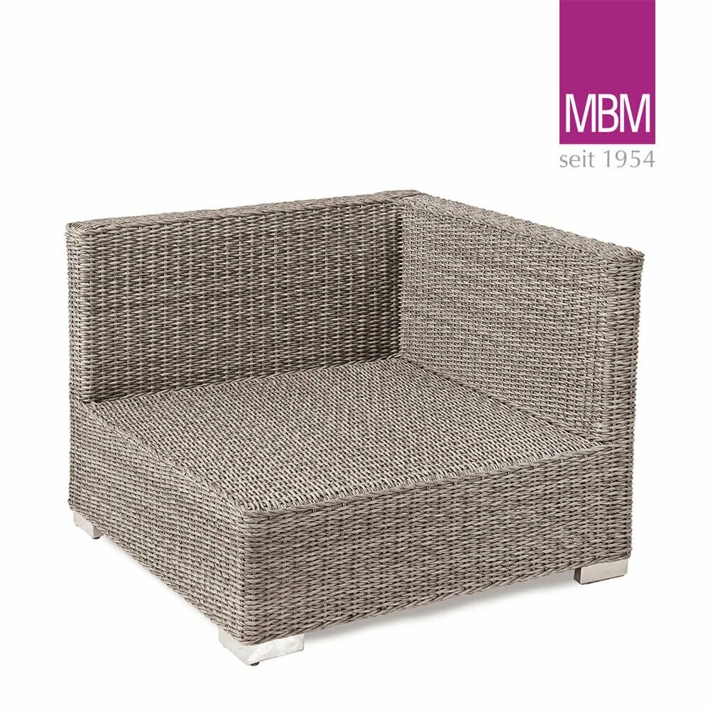 Möbel aus Resysta sehen aus wie Holz und fühlen sich an wie Holz. Das Versprechen von MBM lautet: Für die Herstellung dieser Möbelstücke muss kein einziger Baum gefällt werden. Das Material wurde bereits mit verschiedenen Preisen ausgezeichnet, es ist witterungsbeständig, farbecht, pflegeleicht und sehr langlebig. Gartenmöbel aus diesem Material trotzen Feuchtigkeit, sodass die Oberfläche dauerhaft hält, nicht nachgeschliffen oder neu gestrichen werden muss. Außerdem ist Resysta recycelbar, kann also nach der Verwendung zerkleinert und erneut verwendet werden, wodurch ein unendlicher Kreislauf entsteht. Zu 60 Prozent besteht das Material aus Reishülsen, welche Reststoffe der Lebensmittelindustrie sind. Mirotex Twist ist eine ausgezeichnete Alternative zu Rattan. Das Kunststoffgeflecht überzeugt durch seine natürliche Optik und ist eine hochelastische Faser, die in Handarbeit nach einem traditionellen Flechtverfahren um ein Aluminiumgestell geflochten wird. Sie ist UV-beständig und wetterfest.