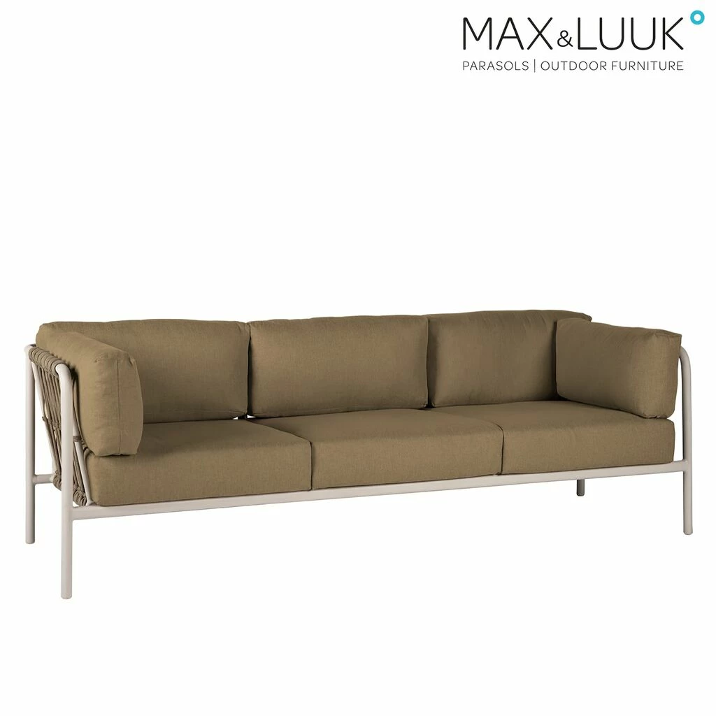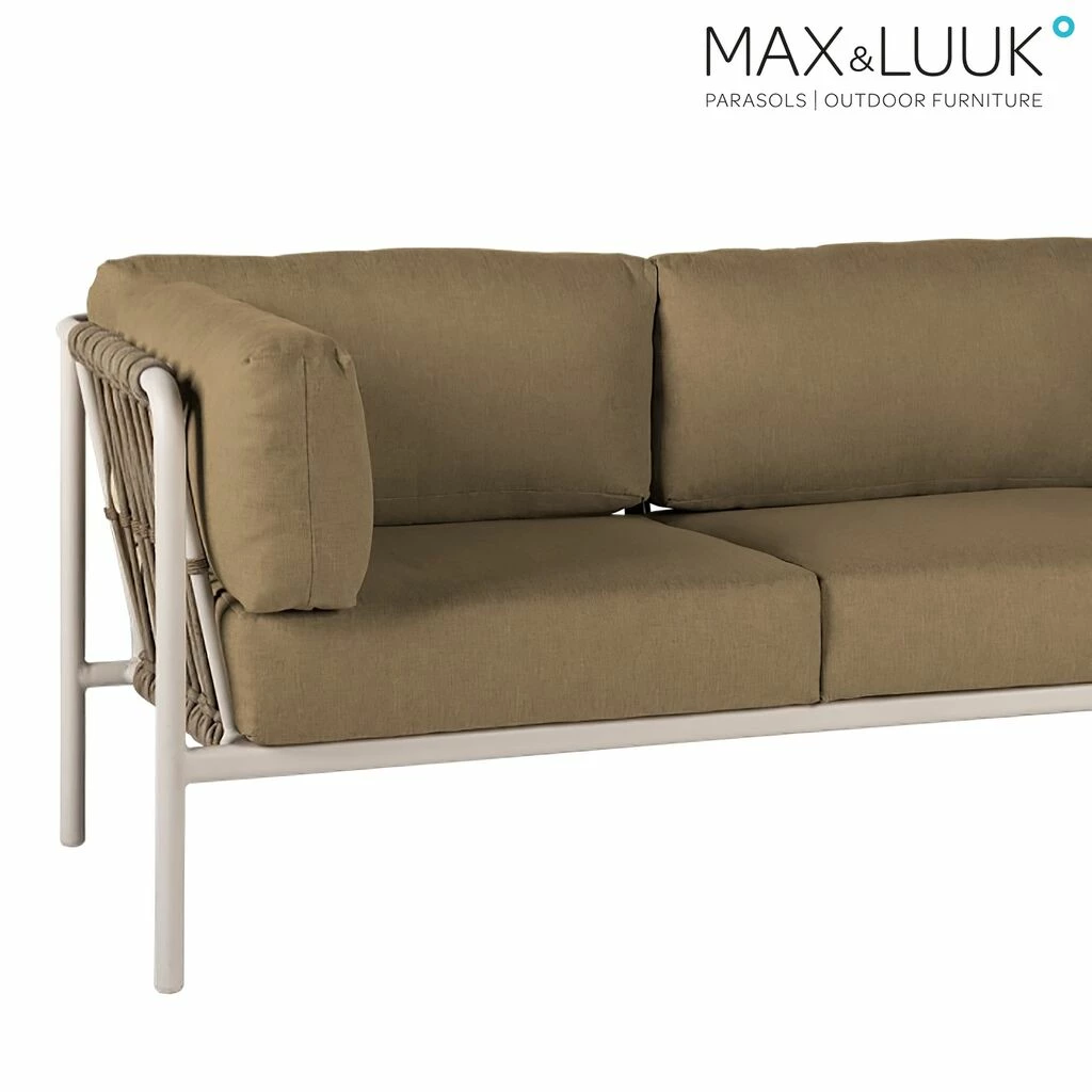 Für das Gartensofa des Herstellers Max & Luuk wird das verwendete Aluminium bei einem elektrostatischen Lackierverfahren pulverbeschichtet, sodass die Basis der Gartenmöbel ihre Farbe erhält. Um die Haltbarkeit der Beschichtung zu erhöhen, wird das Material während der Verarbeitung auf 180°C erhitzt. Gartenmöbel aus Aluminium sind besonders leicht zu reinigen, wetterfest und robust. Wir empfehlen die Nutzung von warmen Wasser und einem feuchten Tuch. Auch ein Universalreiniger kann eingesetzt werden. Säurehaltige Produkte können das Material schädigen und die Wetterbeständigkeit beeinflussen.