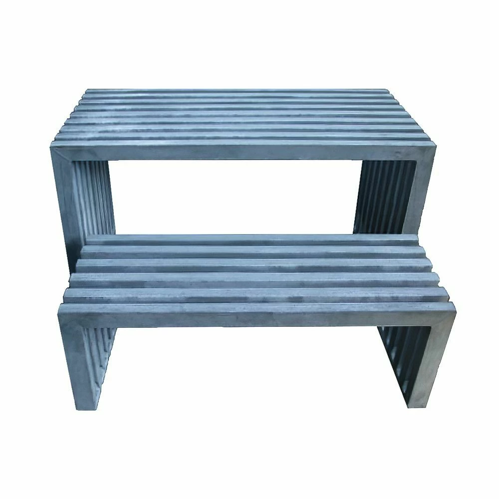 Die Sitzecke aus Reckteckrohren besteht aus einem Tisch sowie einer Bank. Der Stahl wird wetterbeständig galvanisiert und ist langlebig.