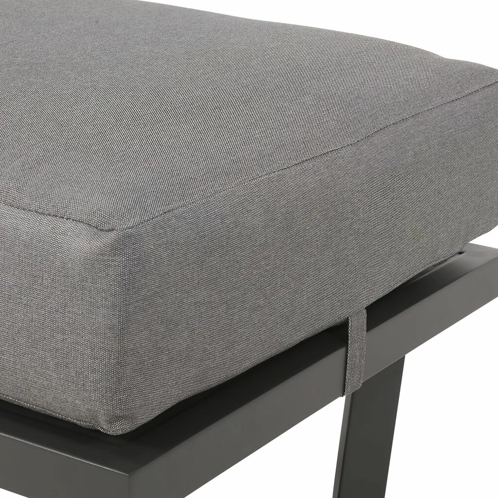 Dieser robuste Gartenstuhl wird unter ständiger Qualitätskontrolle aus Aluminium gegossen und erhält eine graue Beschichtung. Das Outdoor-Möbelstück ist robust und wetterfest. Die Sitzhöhe liegt bei 29 cm (ohne Auflagen). Die 13 cm dicken Olefin-Auflagen sorgen für einen angenehmen Sitzkomfort. Der Stoff hat eine Dichte von 245 gr/m^2 (510D). Das Inlay wird aus einem Baumwoll-Schaumstoff-Gemisch gebildet.Die Kissen haben auf der Rückseite eine Anti-Rutsch-Beschichtung. Zur Reinigung sind Wasser und ein Schwamm ausreichend. Von säurehaltigen Reinigungsmittel wird abgeraten. Diese können die Oberfläche schädigen und zu einem Verlust der Wetterbeständigkeit führen.