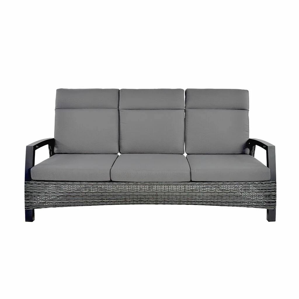 Dieser Gartenstuhl wird unter ständiger Qualitätskontrolle aus Aluminium gefertigt. Das Gestell wird mit einem grauen Polyethylen-Geflecht in Rattanoptik überzogen. Das Outdoor-Möbelstück ist beständig gegenüber Witterung und kann ganzjährig im Außenbereich eingesetzt werden. Die 8 bis 10 cm dicken Auflagen werden aus 270 gr/m^2 Olefin gefertigt. Zur Reinigung sind Wasser und ein Schwamm ausreichend. Von säurehaltigen Reinigungsmittel wird abgeraten. Diese können die Oberfläche schädigen und zu einem Verlust der Wetterbeständigkeit führen.