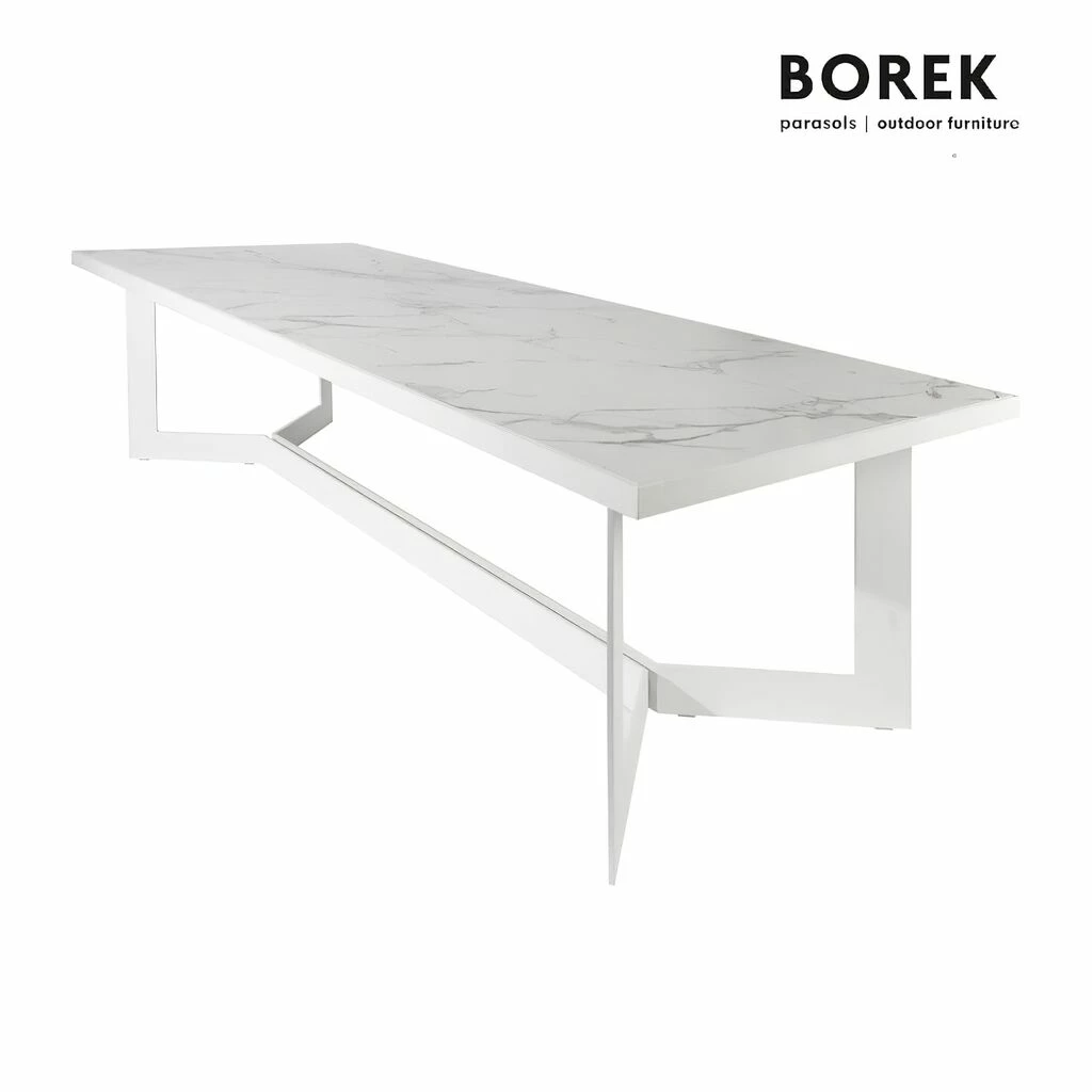 Die Gartenmöbel des Herstellers Borek zeichnen sich durch eine dauerhafte Stabilität und ein modernes Design aus. Eine hochwertige Aluminiumlegierung, die bei 180 Grad pulverbeschichtet wurde, bildet das Gestell der Möbel. Hinzu kommt eine Tischplatte aus Dekton. Das Material ist beständig gegenüber Kratzern, Hitze, Kälte, UV-Strahlung und ist farbecht. Die Tische sind somit absolut wetterfest. Neben Gartentischen bietet der Hersteller auch Loungemöbel, Gartenliegen und Sonnenschirme an, die Sie ebenfalls in unserem Shop online bestellen können.