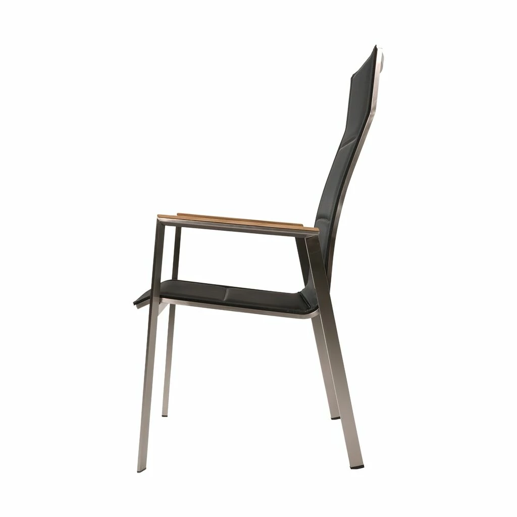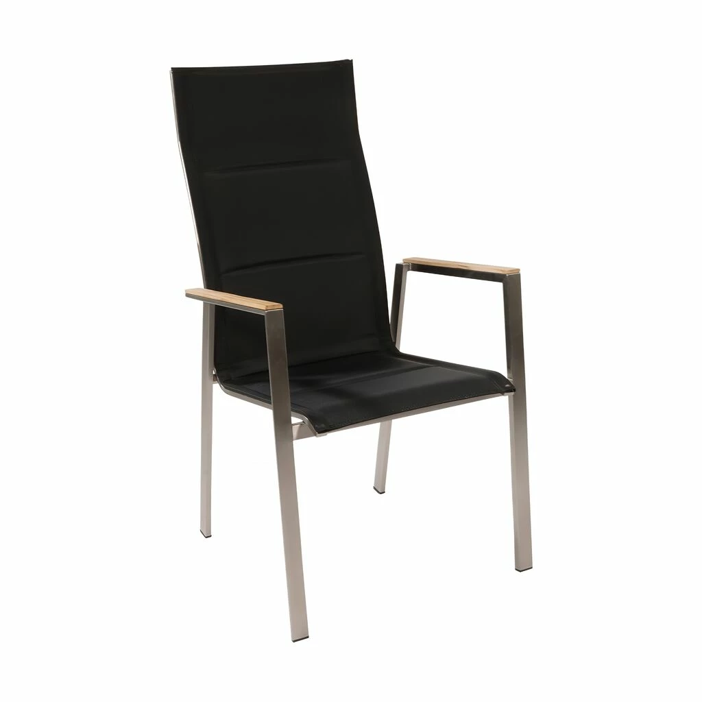 Dieser robuste Gartenstuhl wird unter ständiger Qualitätskontrolle aus Edelstahl (304) sowie Textylen gefertigt. Das Textylen erhält eine Quick-Dry-Foam-Füllung, welche nach Nässe besonders schnell trocknet. Die Outdoor-Möbel sind beständig gegenüber Witterung und können ganzjährig im Außenbereich eingesetzt werden. Zur Reinigung sind Wasser und ein Schwamm ausreichend. Von säurehaltigen Reinigungsmittel wird abgeraten. Diese können die Oberfläche schädigen und zu einem Verlust der Wetterbeständigkeit führen.