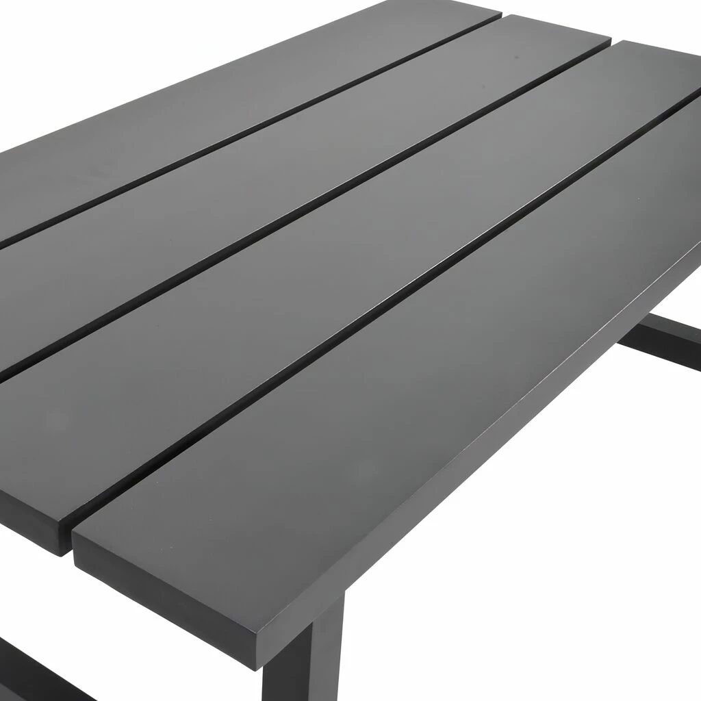 Dieser robuste Gartentisch wird unter ständiger Qualitätskontrolle aus Aluminium gefertigt. Die Tischplatte sowie das Gestell erhalten eine farbliche Beschichtung. Das Outdoor-Möbelstück ist beständig gegenüber Witterung und kann ganzjährig im Außenbereich eingesetzt werden. Zur Reinigung sind Wasser und ein Schwamm ausreichend. Von säurehaltigen Reinigungsmittel wird abgeraten. Diese können die Oberfläche schädigen und zu einem Verlust der Wetterbeständigkeit führen.