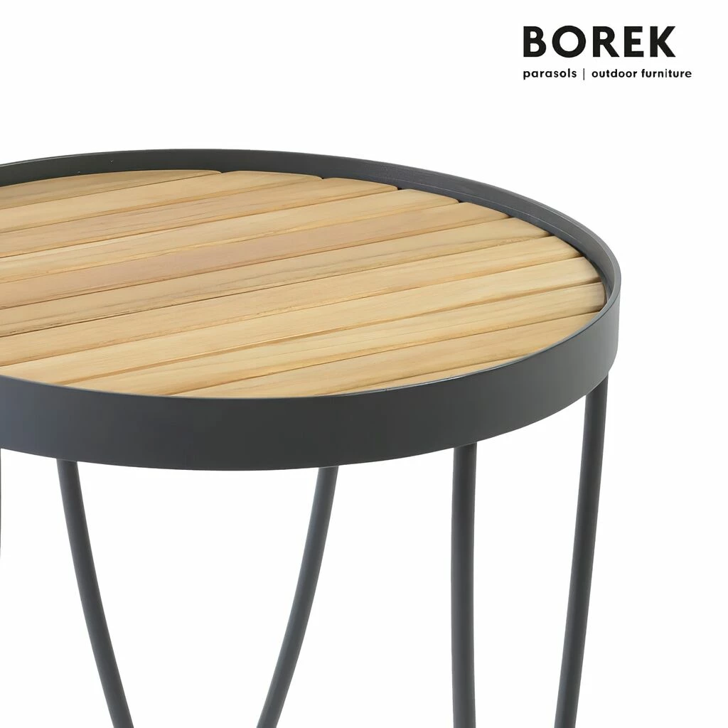 Der kleine Beistelltisch PESARO des niederländischen Gartenmöbel Herstellers BOREK überzeugt mit hochwertiger Verarbeitung und modernem Design. Hergestellt wird der runde Gartentisch aus Teakholz und rostfreiem Edelstahl. Der kleine Outdoor Tisch ist die ideale Ergänzung für Ihre Gartenlounge oder Ihre Sitzecke auf der Terrasse. Unsere Gartenmöbel liefern wir in Deutschland versandkostenfrei bis vor Ihre Haustür.