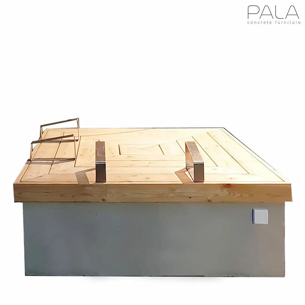 Mit einer Höhe von 60cm besitzt diese Sitzinsel eine komfortable Sitzhöhe, die Jung & Alt zum Pause machen während eines Statdbummels oder Spaziergangs im Park einlädt. Die quadratische Sitzfläche ist mit robustem Lärchenholz ausgestattet. Die wetterfeste Outdoorbank wird aus Beton gefertigt.
