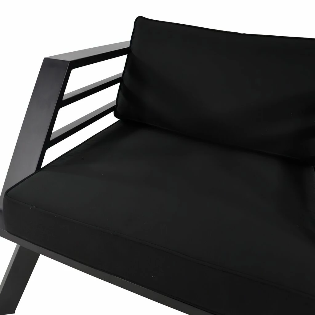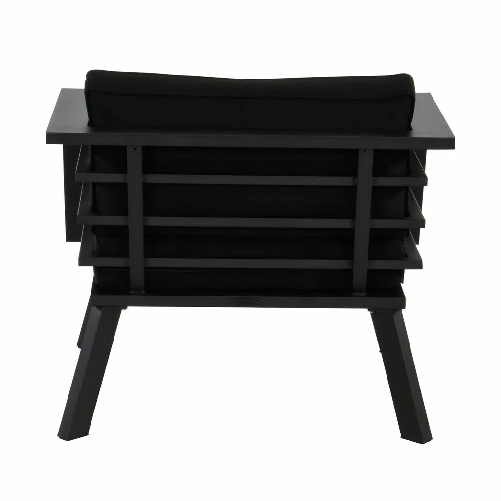 Dieser robuste Gartensessel wird unter ständiger Qualitätskontrolle aus Aluminium gegossen und erhält eine graue Beschichtung. Das Outdoor-Möbelstück ist robust und wetterfest. Die 10 cm dicken Spun-Polyester-Auflagen mit einer Dichte von 300 gr/m^2 sorgen für einen angenehmen Sitzkomfort. Das Inlay wird aus einem Baumwoll-Schaumstoff-Gemisch gebildet. Die Sitzhöhe liegt bei 30 cm ohne Auflage, die Höhe der Armlehnen bei 66 cm. Zur Reinigung sind Wasser und ein Schwamm ausreichend. Von säurehaltigen Reinigungsmittel wird abgeraten. Diese können die Oberfläche schädigen und zu einem Verlust der Wetterbeständigkeit führen.