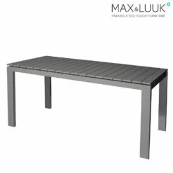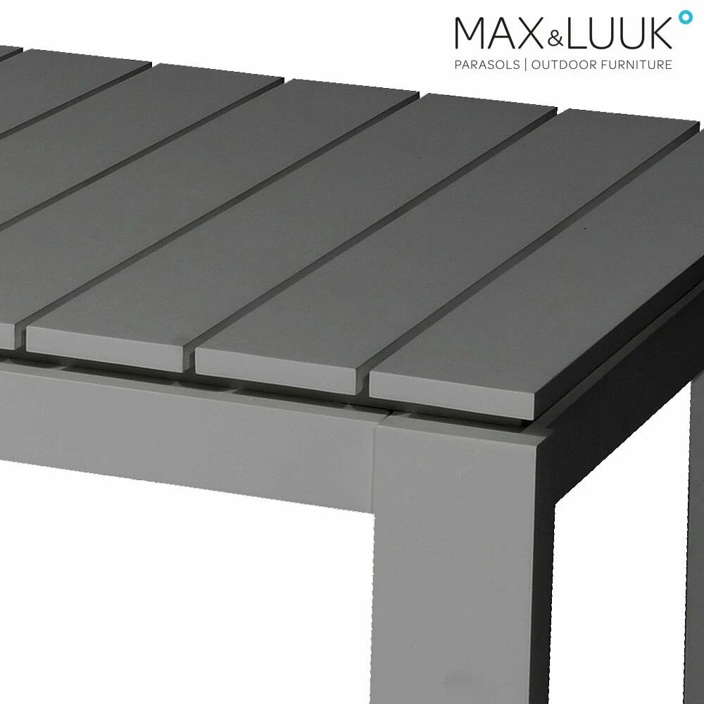 Als Teil der Gartenmöbel-Kollektion des niederländischen Herstellers Max&Luuk überzeugt der Gartentisch MORRIS mit modernem Design und erstklassiger Verarbeitung. Der Tisch mit den Maßen 160x80cm wird aus beständigem Aluminium in Weiß und Anthrazit gefertigt. Dank des schlichten Designs kann der Tisch mit zahlreichen Gartenstühlen kombiniert werden.