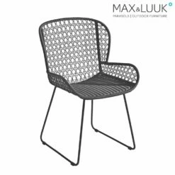 Die Sitzschale des Gartenstuhls ist mit einem Allwetterseil umflochten. Dabei handelt es sich um ein innovatives und starkes Material, welches den Sitzmöbeln von Max & Luuk ein aufregendes und modernes Design verleiht. Die weiche Outdoor-Faser erhöht den Sitzkomfort. Sie wird synthetisch hergestellt und besteht aus Polyethylen. Das Gewebe wurde entwickelt, um Gartenmöbel herzustellen, die extremen Wetterbedingungen wie starker UV-Strahlung und Temperaturschwankungen standhalten. Darüberhinaus ist die Faser resistent gegenüber Schimmel. Salz- und Chlorwasser hält sie ebenfalls stand. Es wird die Reinigung mit einem Multi Cleaner empfohlen. Zusätzlich können eine weiche Nylonbürste oder auch ein Niederdruckluftschlauch zur Pflege eingesetzt werden.