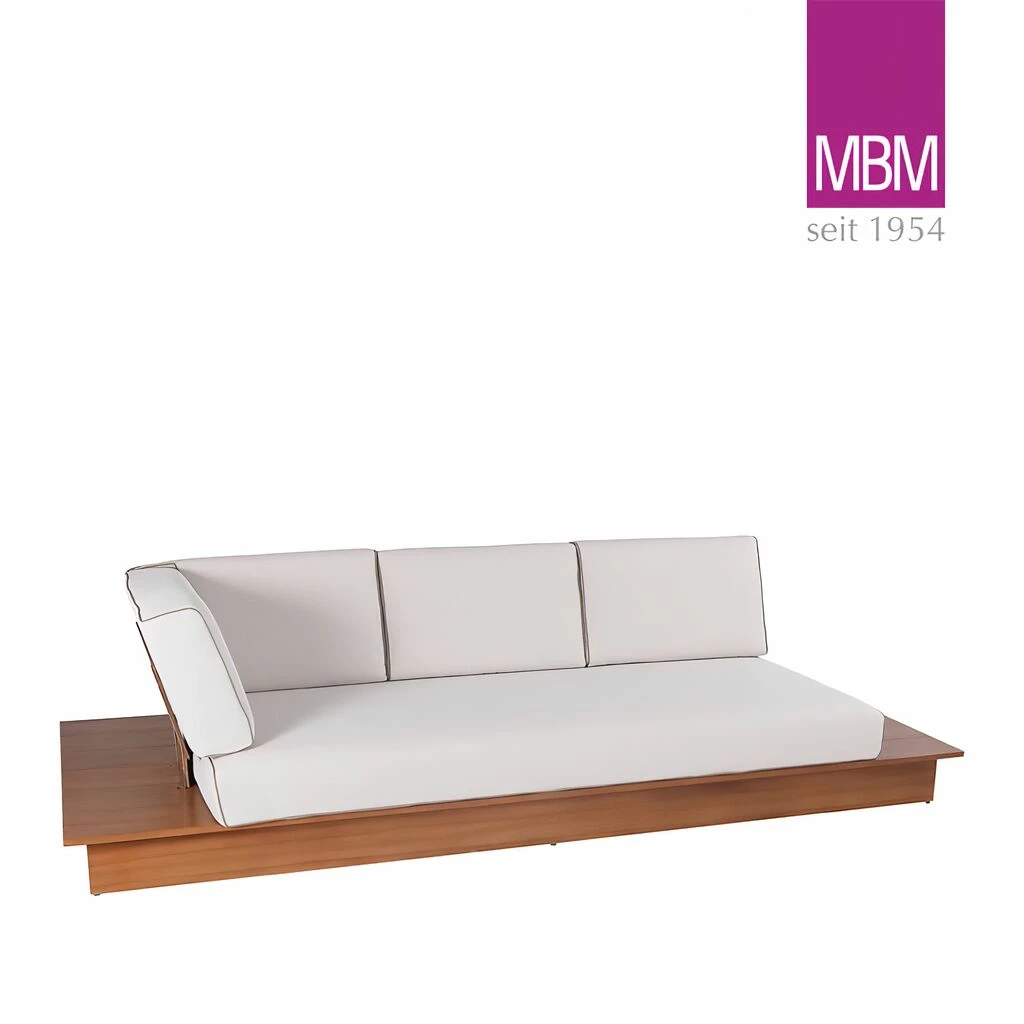 Großzügige Sitzfläche bietet diese Lounge-Ecke von MBM. Sie ist für Innen- und Außenräume geeignet. Die passenden Polster sind bereits im Lieferumfang enthalten. Die Bank wird aus dem nachhaltigen Rohstoff Resysta gefertigt und wird dadurch wetterfest, UV-beständig und langlebig.