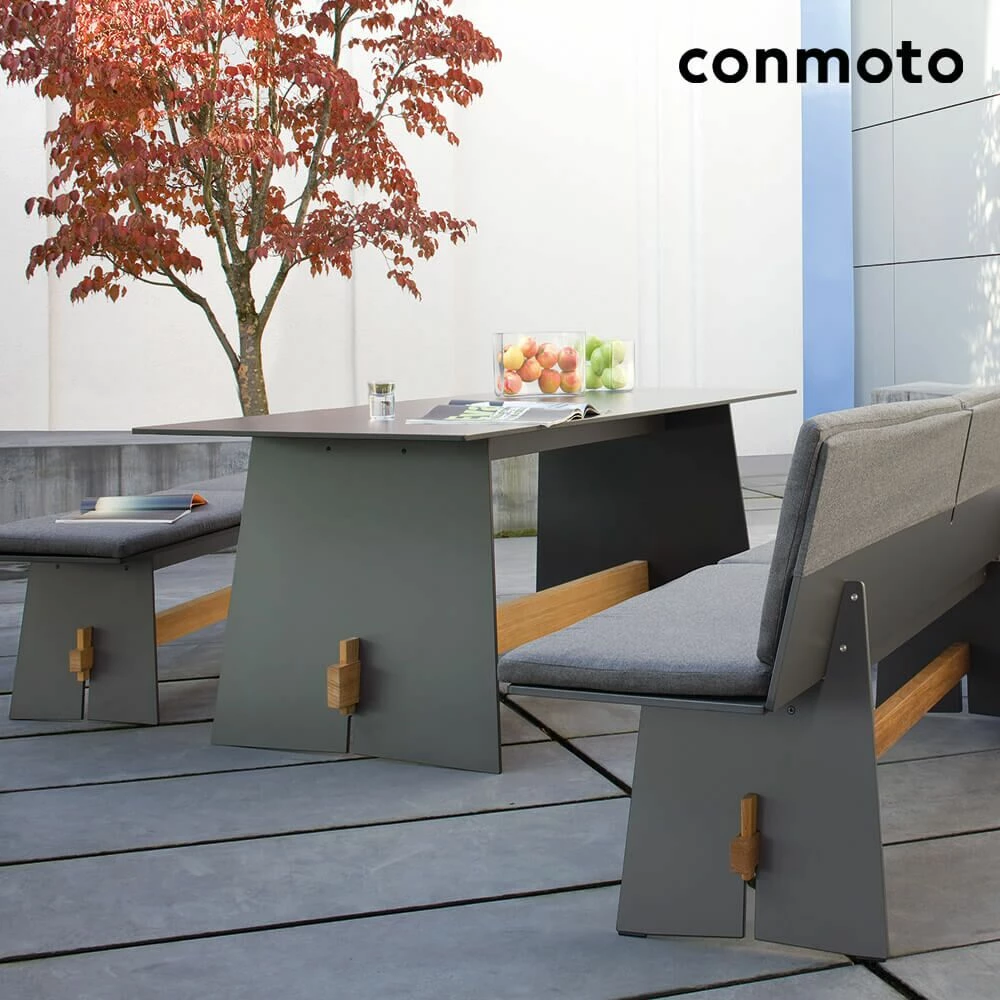 Die Outdoormöbel sind die ideale Ergänzung zu den Gartenmöbeln unserer Kollektion Conmoto und können frei mit diesen kombiniert werden. Das edle Design und die hohe Robustheit unterstreichen die vielfältige Einsatzbarkeit. Die Sitzgruppe kann sowohl im Garten sowie auch auf der Terrasse oder dem Balkon genutzt werden und setzt auch im Innenbereich moderne Akzente. Die Herstellung in verschiedenen Größen ist möglich. Individuelle Farb- und Holzvarianten lassen Ihren Garten zu einem einzigartigen Ruhepunkt werden. Gern erstellen wir Ihnen ein unverbindliches Angebot zu Ihren Sonderwünschen.