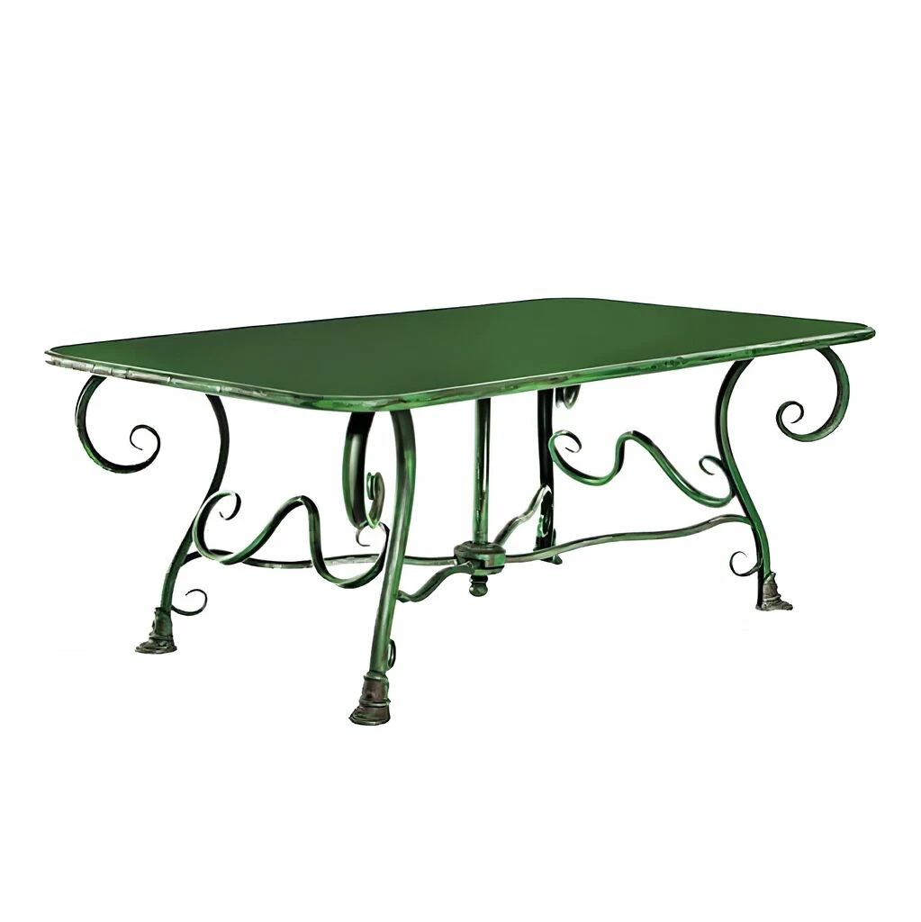 Niedriger eckiger Gartentisch aus Schmiedeeisen im antiken Design. Dieser nostalgische Garten Tisch wird in einer traditionsreichen Kunstschmiede in Handarbeit aus hochwertigem Schmiedeeisen gefertigt. Als Vorlage dienen Tische, wie sie im 19. Jahrhundert in zahlreichen französischen Gärten zu finden waren. Ob rot, grün oder klassisch weiß, der farblichen Gestaltung sind innerhalb des RAL Farbspektrums keine Grenzen gesetzt. Um Ihre neue Sitzecke zu komplettieren finden Sie in unserem Gartenmöbel Sortiment ebenso stilvolle Gartenstühle aus hochwertigem Schmiedeeisen.