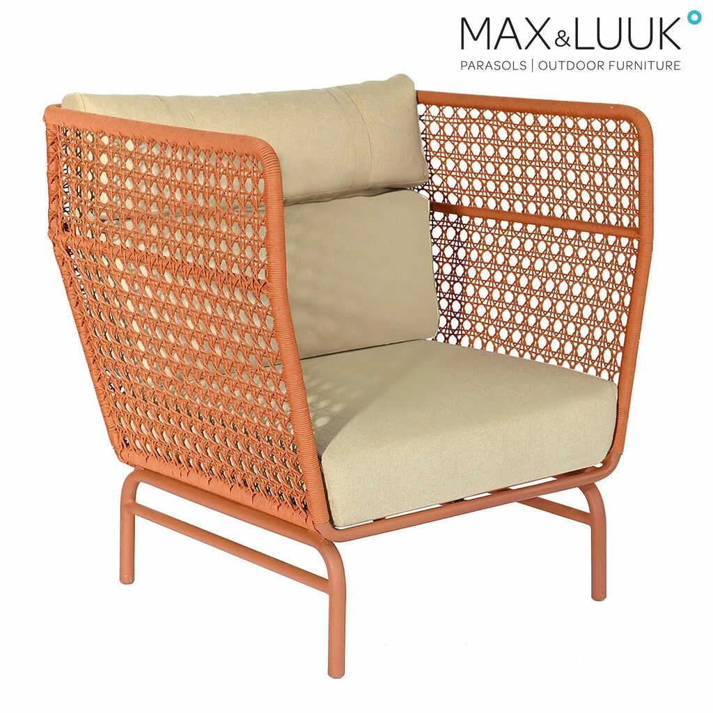 Für den Gartensessel des Herstellers Max & Luuk wird das verwendete Aluminium bei einem elektrostatischen Lackierverfahren pulverbeschichtet, sodass die Basis der Gartenmöbel ihre Farbe erhält. Um die Haltbarkeit der Beschichtung zu erhöhen, wird das Material während der Verarbeitung auf 180°C erhitzt. Gartenmöbel aus Aluminium sind besonders leicht zu reinigen, wetterfest und robust. Wir empfehlen die Nutzung von warmen Wasser und einem feuchten Tuch. Auch ein Universalreiniger kann eingesetzt werden. Säurehaltige Produkte können das Material schädigen und die Wetterbeständigkeit beeinflussen.