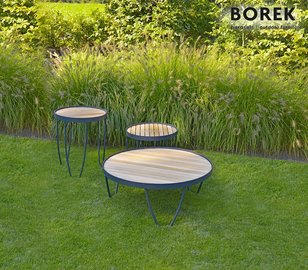 Der runde Outdoor Couchtisch PESARO des niederländischen Gartenmöbel Herstellers BOREK überzeugt mit hochwertiger Verarbeitung und modernem Design. Hergestellt wird der runde Gartentisch aus Teakholz und rostfreiem Edelstahl. Der Loungetisch ist die ideale Ergänzung für Ihre Gartenlounge. Unsere Gartenmöbel liefern wir in Deutschland versandkostenfrei bis vor Ihre Haustür.