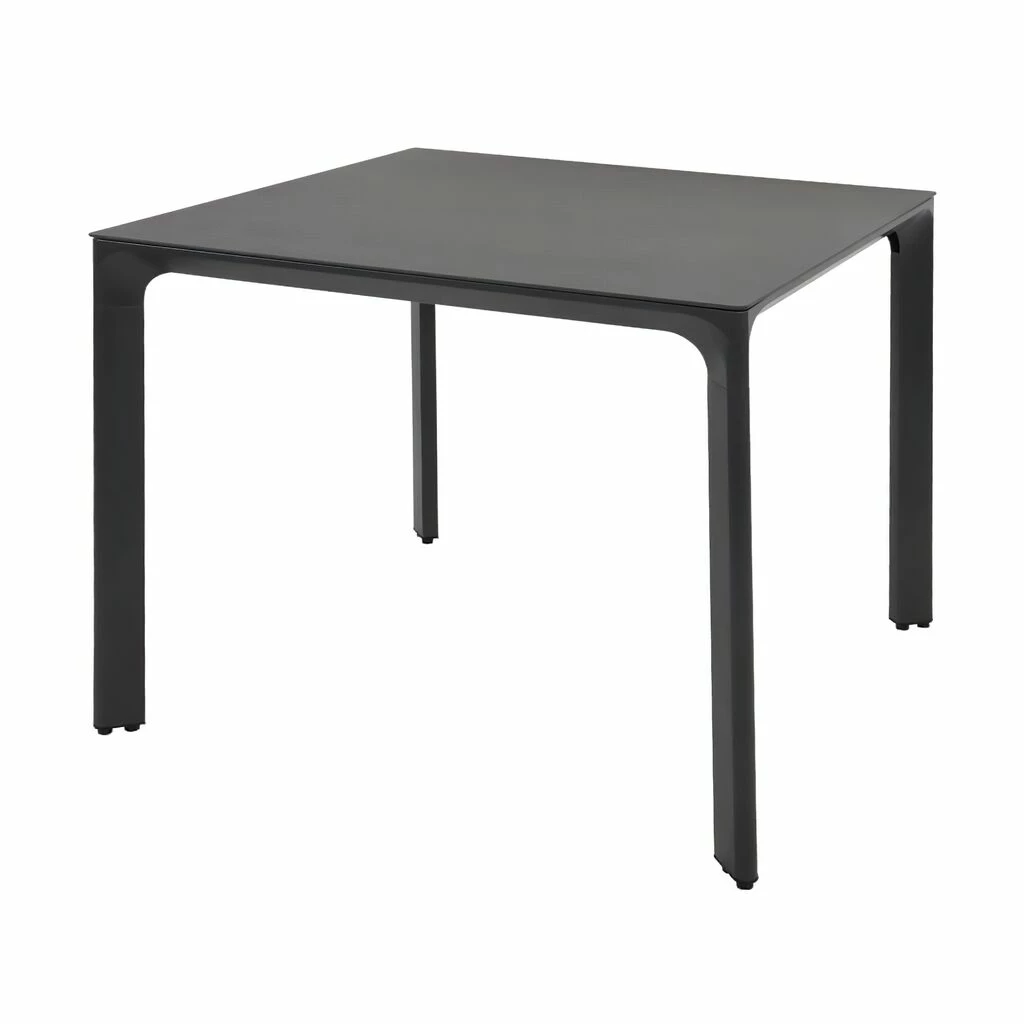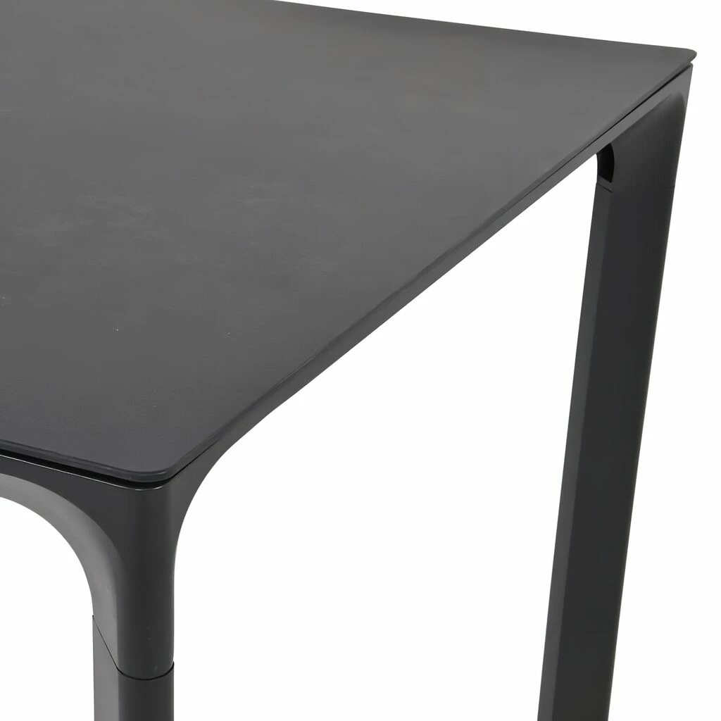 Dieser robuste Gartentisch wird unter ständiger Qualitätskontrolle aus Aluminium gegossen und erhält eine farbige Pulverbeschichtung. Die Tischplatte besteht aus Glas mit einer Beschichtung in Keramikoptik. Das Outdoor-Möbelstück ist wetterfest. Zur Reinigung sind Wasser und ein Schwamm ausreichend. Von säurehaltigen Reinigungsmittel wird abgeraten. Diese können die Oberfläche schädigen und zu einem Verlust der Wetterbeständigkeit führen.