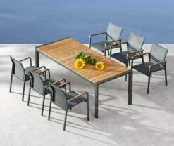 Große Alu 6er Sitzgruppe Mit Teakholzplatte In Anthrazit – Legar