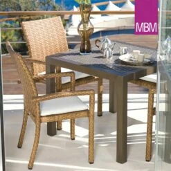 Garten Stapelstuhl Von MBM – Alu & Polyrattan – Mit Armlehnen – Sessel Bellini
