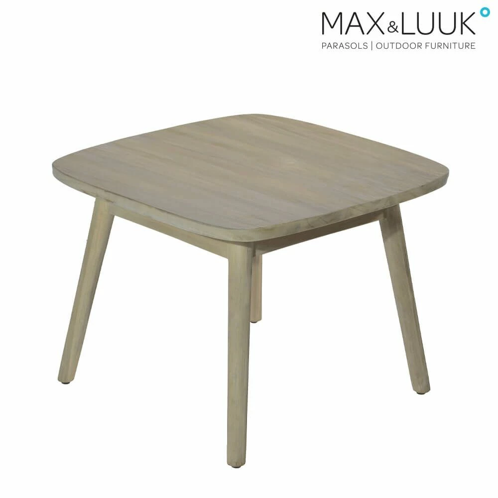 Die Gartentische LENNON von Max & Luuk werden aus Teakholz gefertigt. Im Freien ändert das Holz im Laufe der Zeit seinen Farbton und wird silbergrau, da die Pigmente in der Oberflächenschicht des Holzes verblassen. Jedes Stück Teakholz ist ein Naturprodukt und hat eine individuelle Struktur. Durch Wettereinflüsse, starke Temperaturschwankungen oder eine Änderung des Feuchtigkeitgehaltes im Holz, können Risse auftreten. Dieses „Schwinden“ ist ein natürlicher Vorgang, welcher keinerlei Einflüsse auf die Qualität des Gartenmöbels hat. Drei bis vier Mal im Jahr sollte das Holzmöbel mit einem Teak Cleaner von Schmutz befreit werden. Die Verwendung eines Hochdruckreinigers wird nicht empfohlen. Mit einem Teak Protector kann das Holz vor Flecken, zum Beispiel von Speisen oder Getränken, geschützt werden. Im Winter können Teakholzmöbel an einem trocknen Ort gelagert werden.