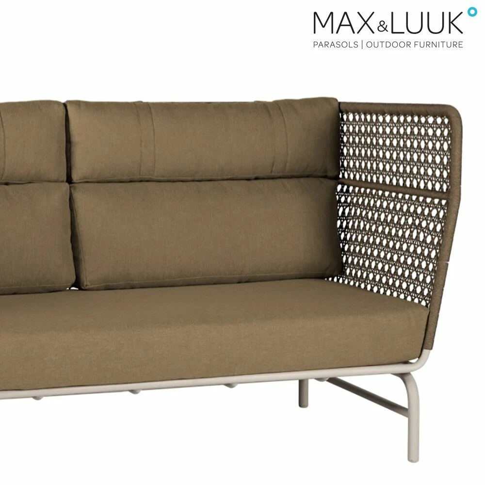 Für das Gartensofa des Herstellers Max & Luuk wird das verwendete Aluminium bei einem elektrostatischen Lackierverfahren pulverbeschichtet, sodass die Basis der Gartenmöbel ihre Farbe erhält. Um die Haltbarkeit der Beschichtung zu erhöhen, wird das Material während der Verarbeitung auf 180°C erhitzt. Gartenmöbel aus Aluminium sind besonders leicht zu reinigen, wetterfest und robust. Wir empfehlen die Nutzung von warmen Wasser und einem feuchten Tuch. Auch ein Universalreiniger kann eingesetzt werden. Säurehaltige Produkte können das Material schädigen und die Wetterbeständigkeit beeinflussen.