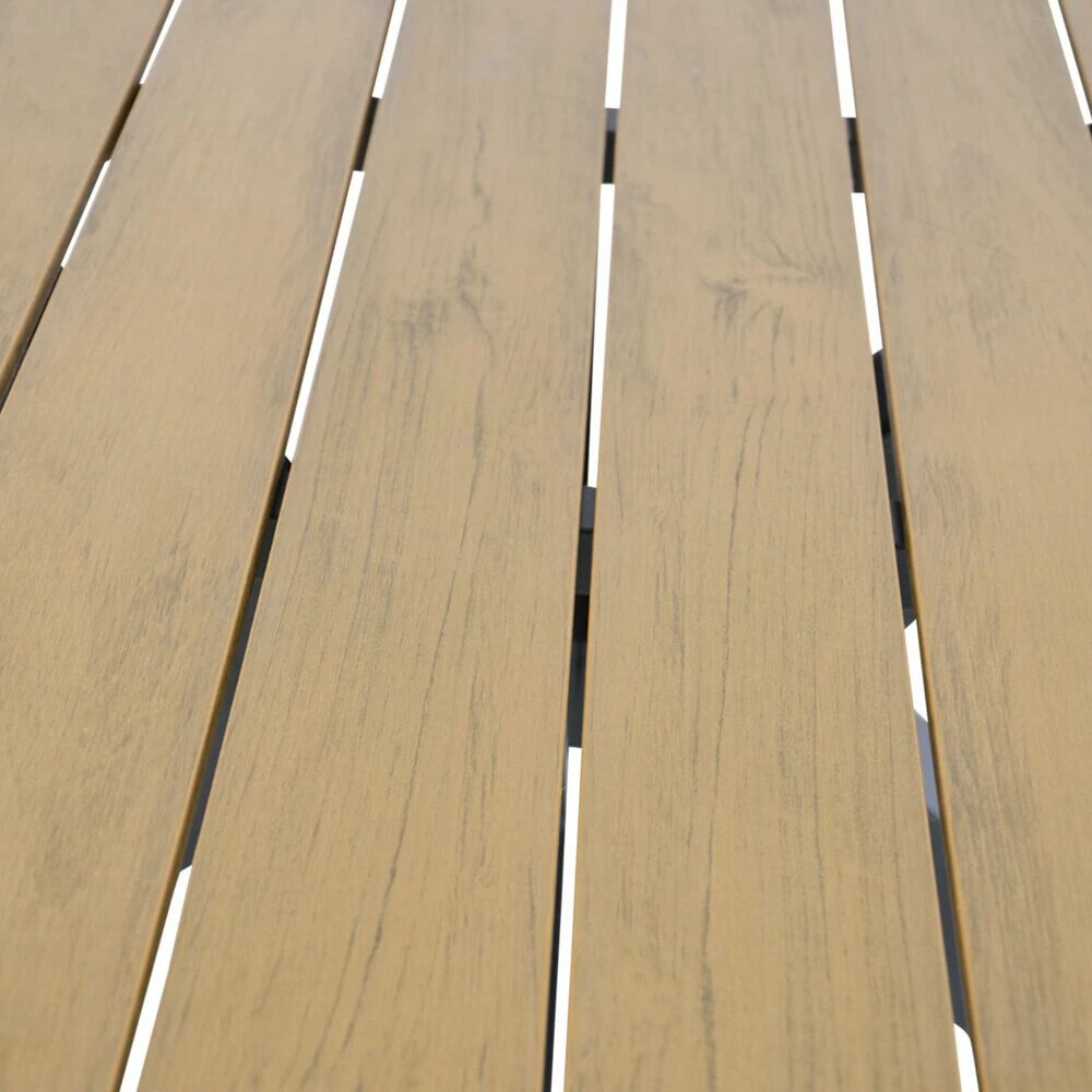 Dieser robuste Gartentisch wird unter ständiger Qualitätskontrolle aus Aluminium gegossen und erhält eine graue Pulverbeschichtung. Als Tischplatte wird eine Polywoodplatte verwendet, welche strapazierfähig, robust und pflegeleicht ist. Alle Füße sind leicht verstellbar. Die Outdoor-Möbelstücke sind wetterfest. Zur Reinigung sind Wasser und ein Schwamm ausreichend. Von säurehaltigen Reinigungsmittel wird abgeraten. Diese können die Oberfläche schädigen und zu einem Verlust der Wetterbeständigkeit führen.