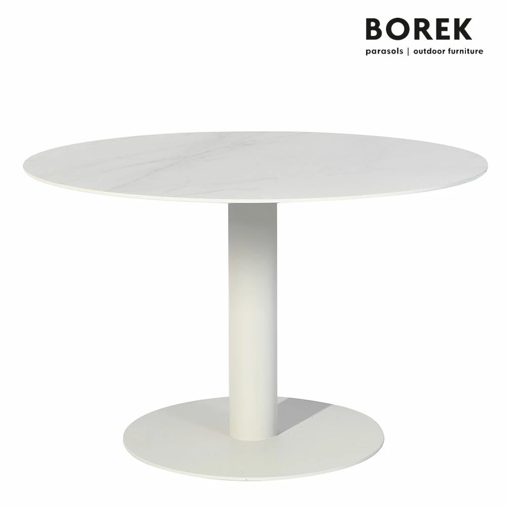 Diese Gartentische aus dem Hause Borek überzeugen mit einem modernen Design, das an verträumte Stunden im Spätsommer denken lässt. Das Edelstahlgestell, welches bei 180 Grad pulverbeschichtet wurde, ist pflegeleicht und robust. Die Dekton-Tischplatte wird unter extrem hohen Temperaturen gefertigt, welche die Platte steinähnlich werden lassen. Dekton besteht aus den selben Rohmaterialien, welche auch bei der Produktion von Glas, Porzellen and Quartz zur Verwendung kommen und ist somit witterungsbeständig. Das Material ist beständig gegenüber Kratzern, Hitze, Kälte, UV-Strahlung und ist farbecht. Die Tische sind somit absolut wetterfest.