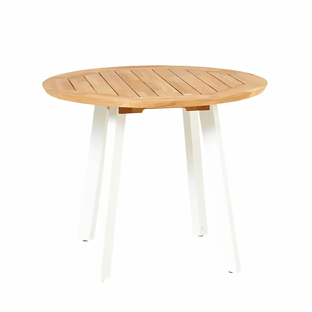 Der DARCEY M Gartentisch mit seinem attraktiven Mosaik-Design und den weißen Aluminium Tischbeinen eignet sich hervoragend für die moderne Gartengestaltung. Das recycelte Teakholz ist besonders langlebig. Der Holztisch ist in drei Größen erhältlich.