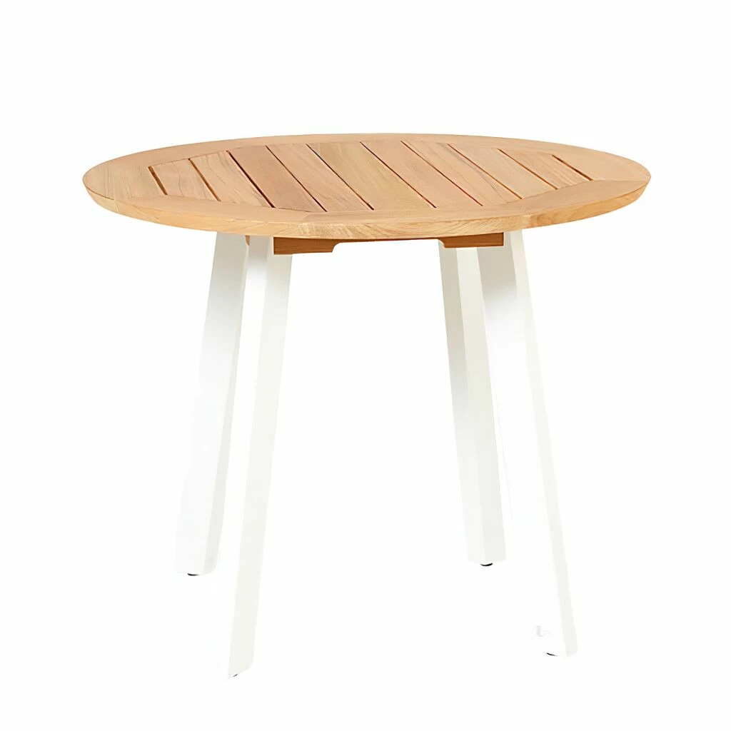 Der runde Gartentisch überzeugt mit einer hochwertigen Teakholz Tischplatte und stabilen Aluminium Tischbeinen in edlem weiß. Der Tisch ist in 3 Größen erhältlich und passende Gartenstühle finden Sie ebenfalls in unserem Sortiment.